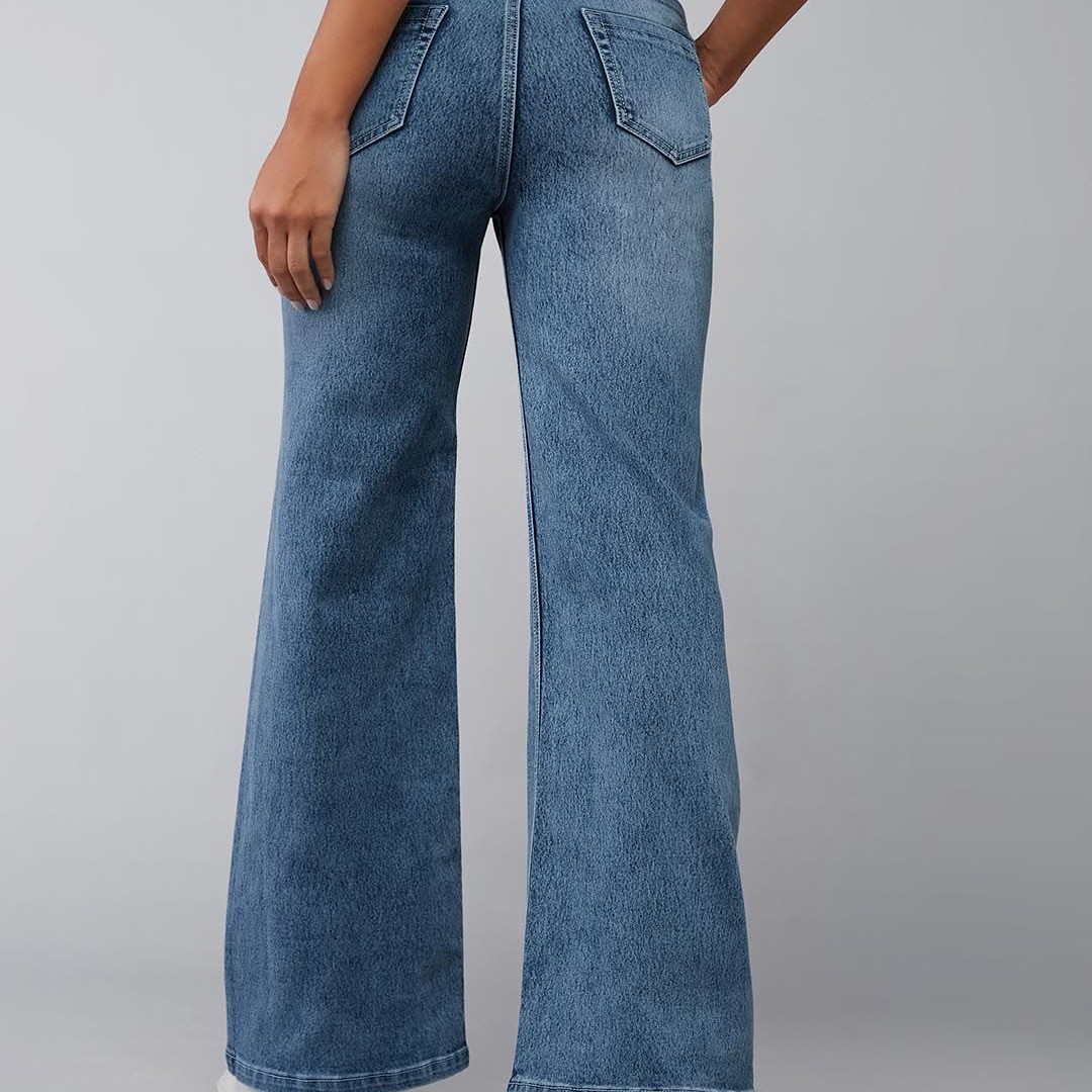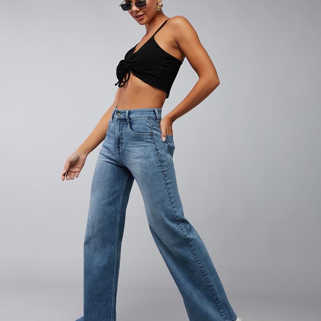 DOLCE CRUDO Women Wide Leg High-Rise Light Fade Stretchable Jeans