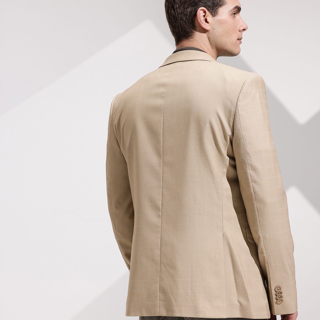 INVICTUS Checked Notched Lapel Collar Slim Fit Semiformal Blazer