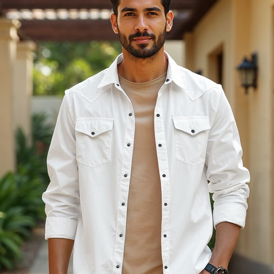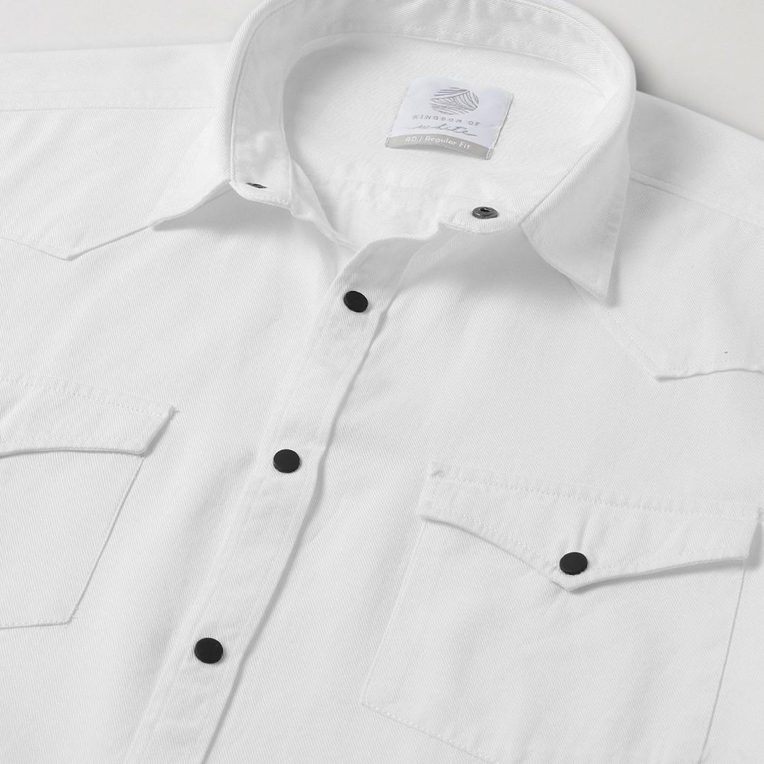 KINGDOM OF WHITE Pure Cotton Western Casual Stay White Shirt