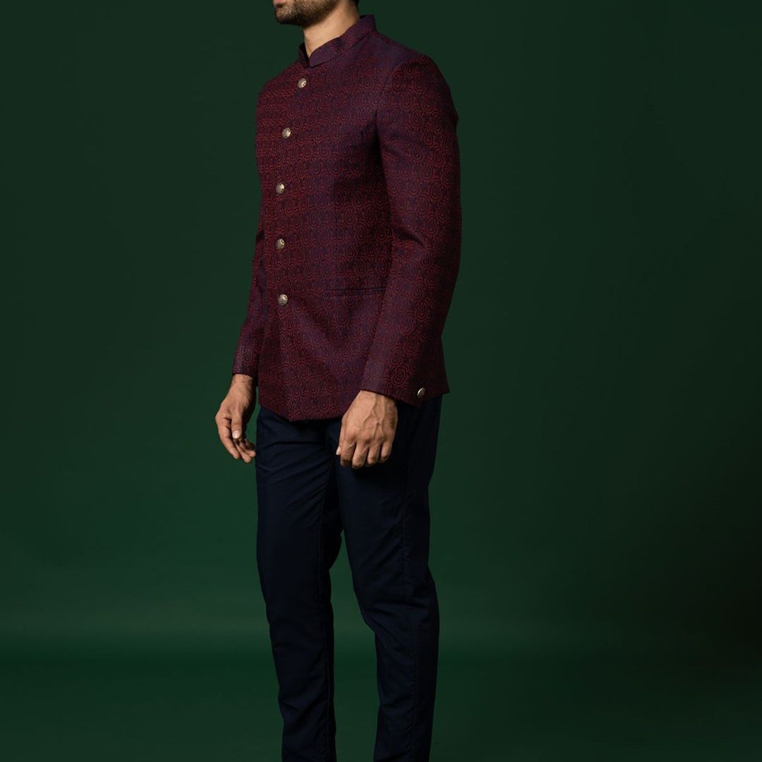 KISAH Woven-Design Bandhgala Blazer