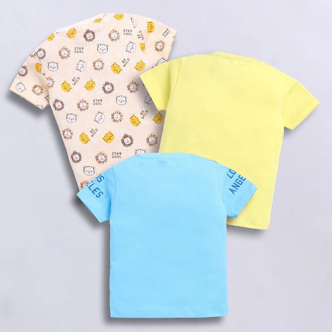 LITTLE NINJA Boys Pack of 3 Graphic Printed Round Neck Cotton T-shirts