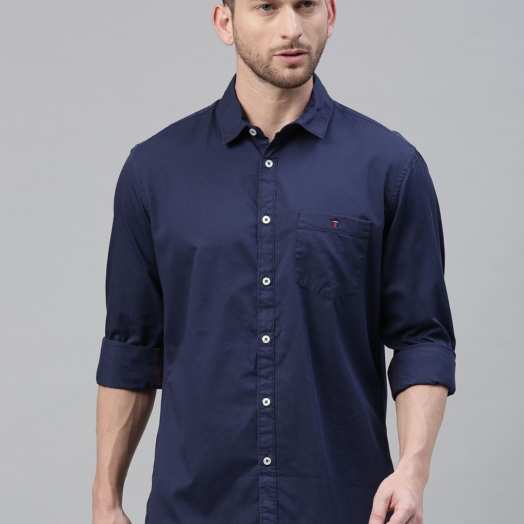 Louis Philippe Jeans Men Navy Blue Regular Fit Solid Casual Shirt