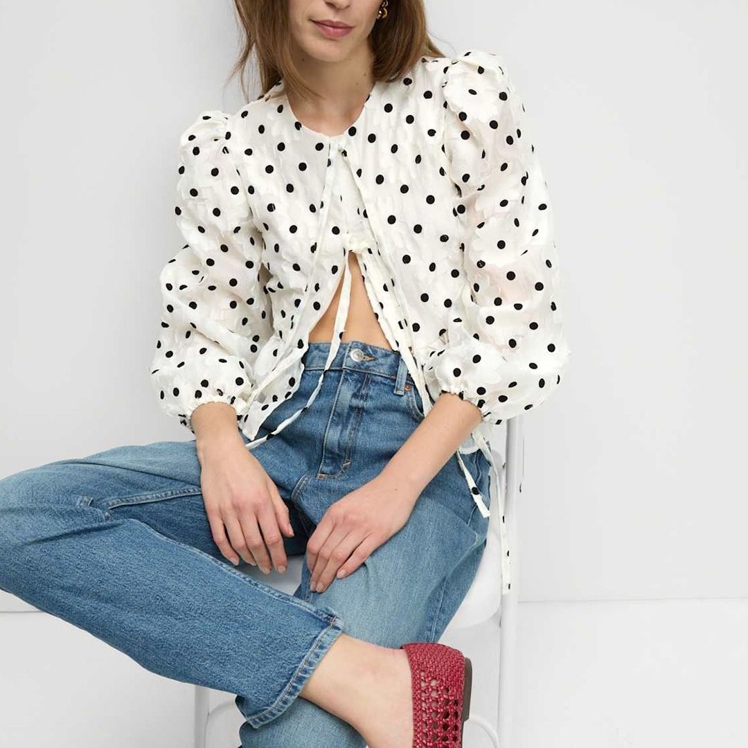 Marks & Spencer Polka Dot Printed Puff Sleeve Top