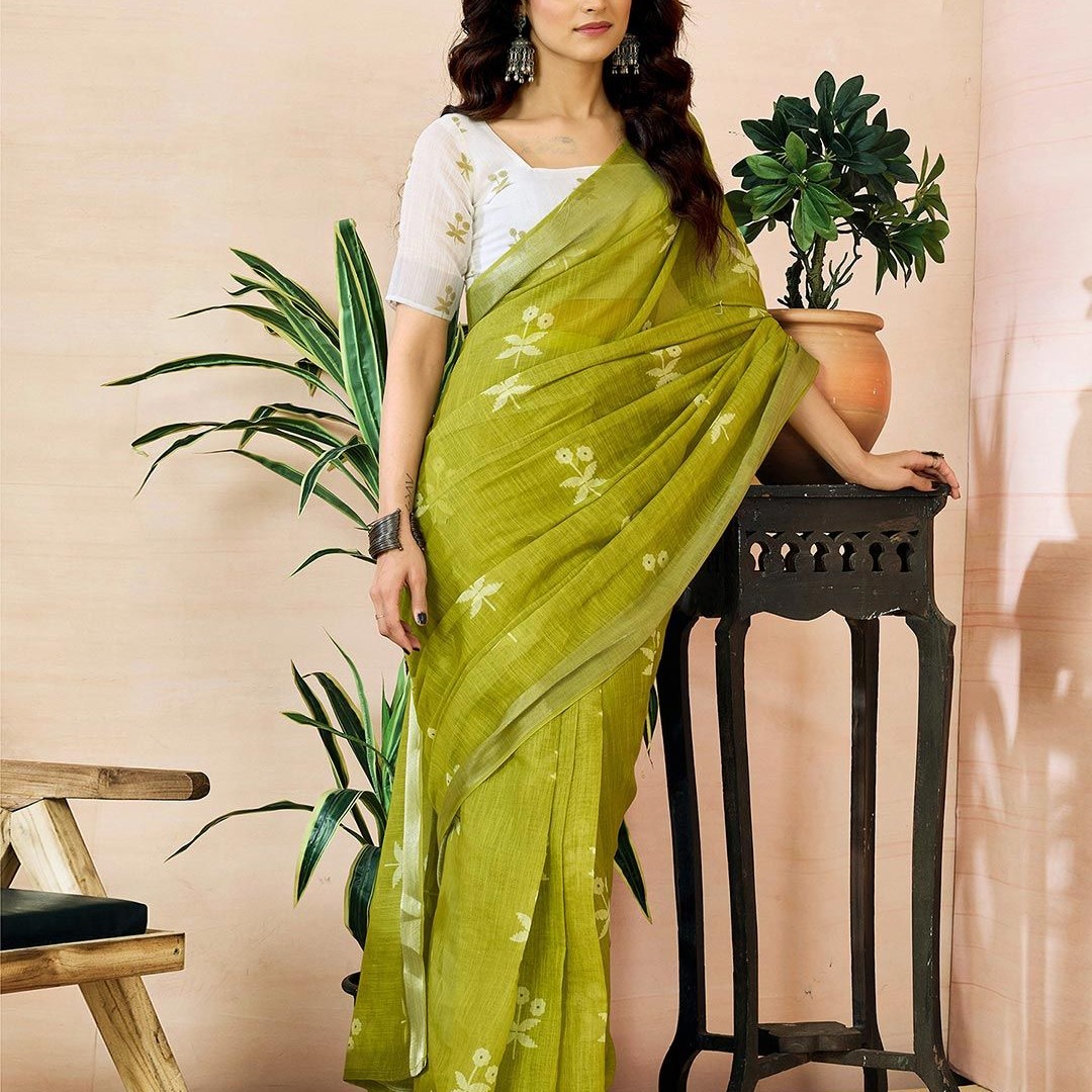 Mitera Ethnic Motifs Pure Linen Ready to Wear Saree