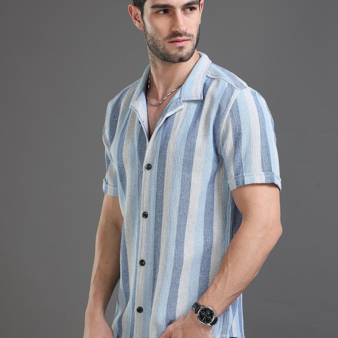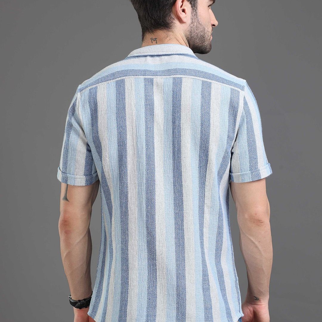 Moda Rapido blue Slim Fit Striped Short Sleeves Cotton Casual Shirt