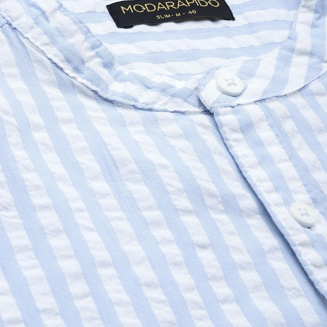 Moda Rapido Men Blue & White Slim Fit Striped Casual Shirt
