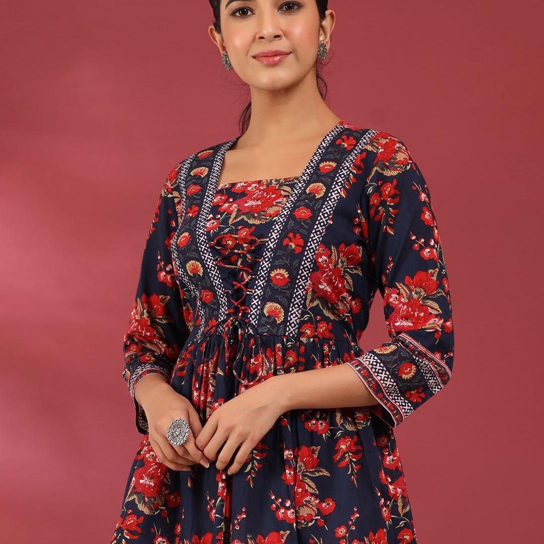 Rain & Rainbow Floral Print Cotton Empire Top