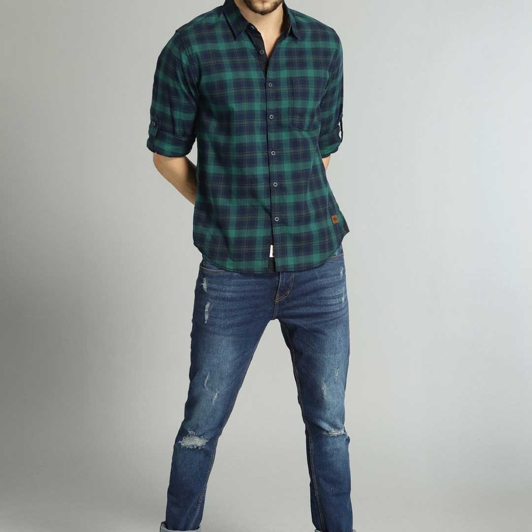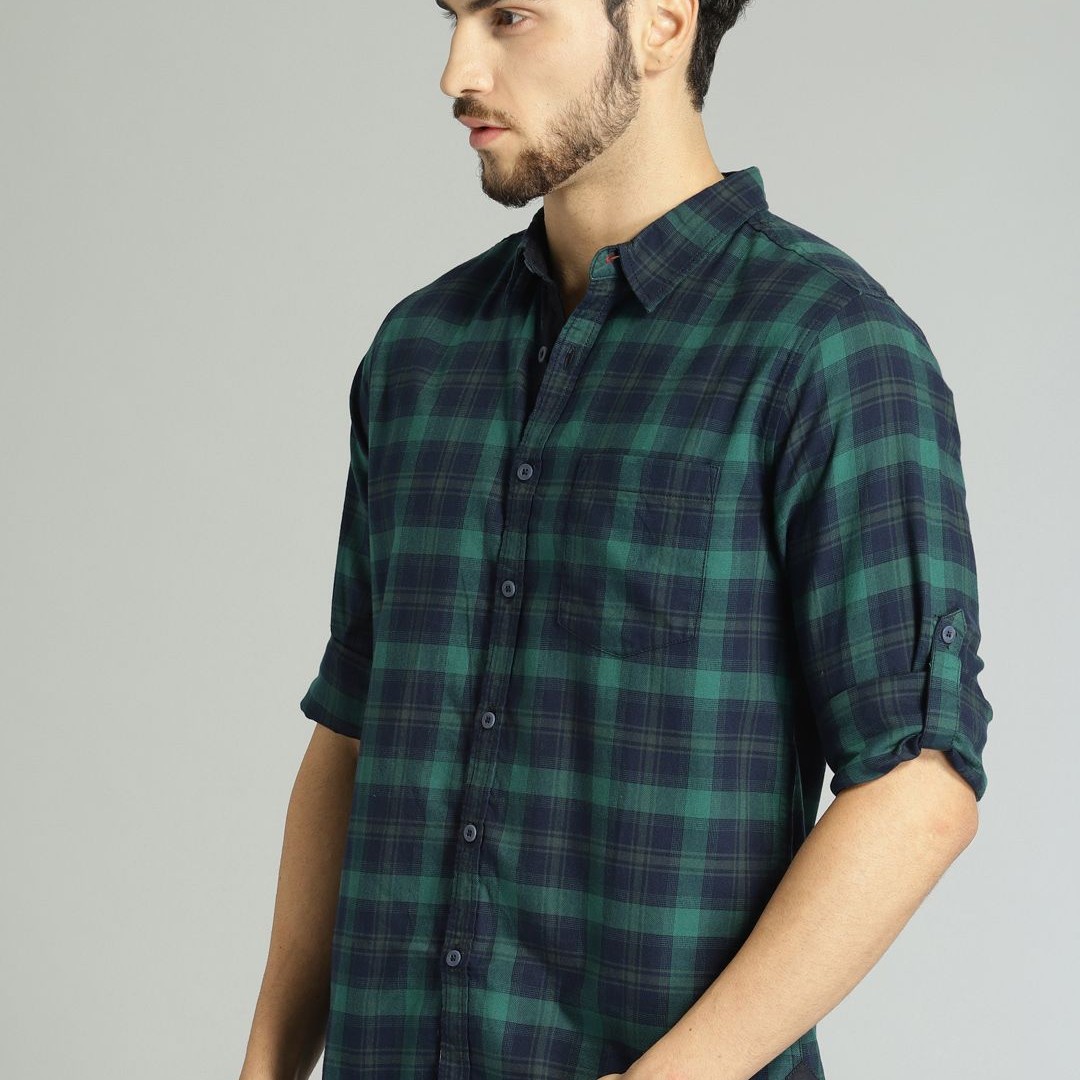 Roadster Men Green & Navy Blue Checked Casual Shirt