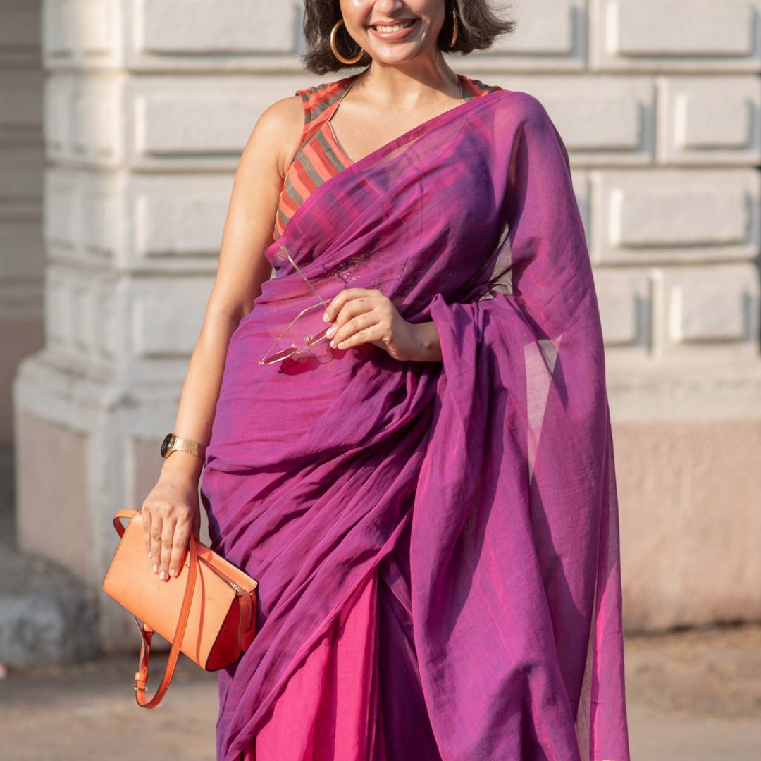 Suta Pink Solid Pure Mul Cotton Saree