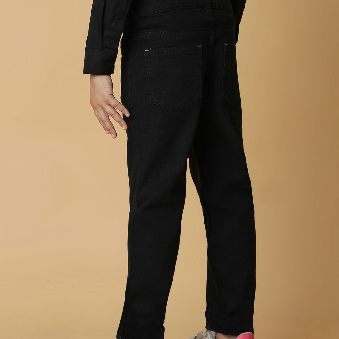 TALES & STORIES Boys Black Slim Fit Mid-Rise Clean Look Denim Jeans