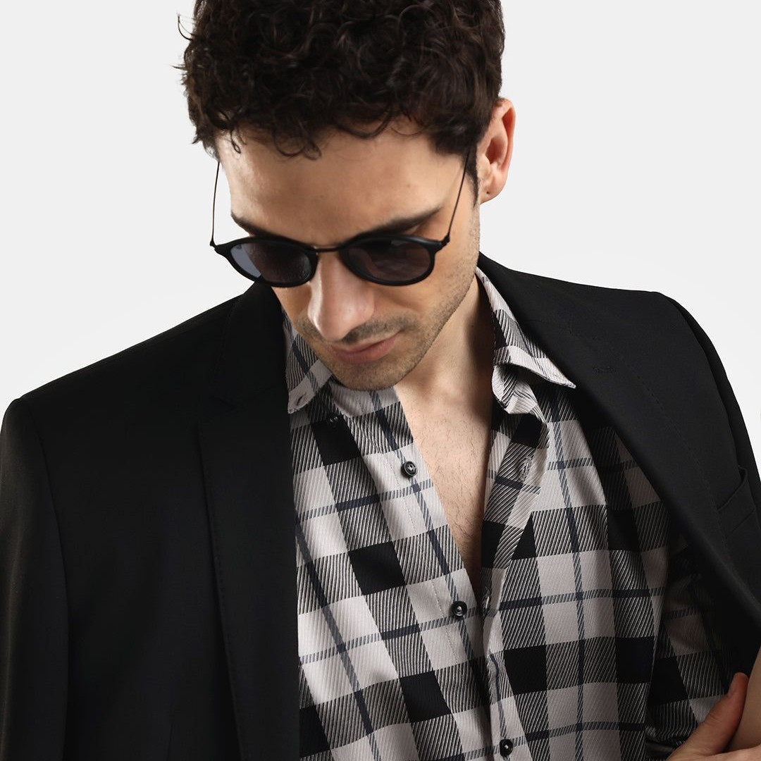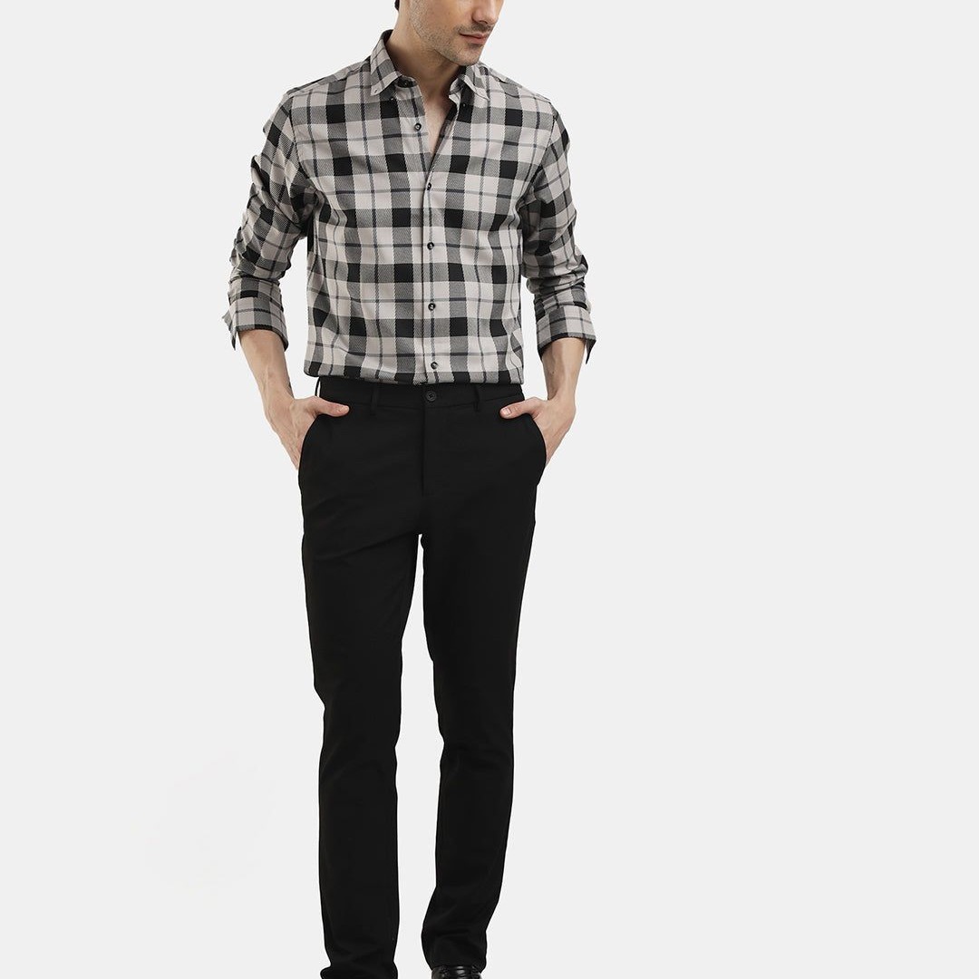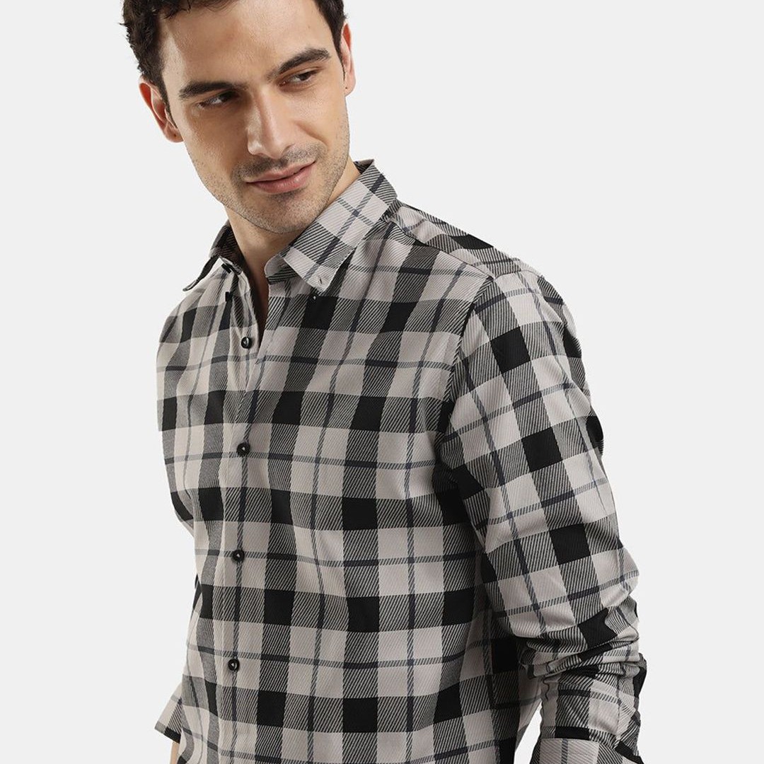The Collection Checked Button Down Collar Long Sleeves Classic Slim Fit Cotton Shirt