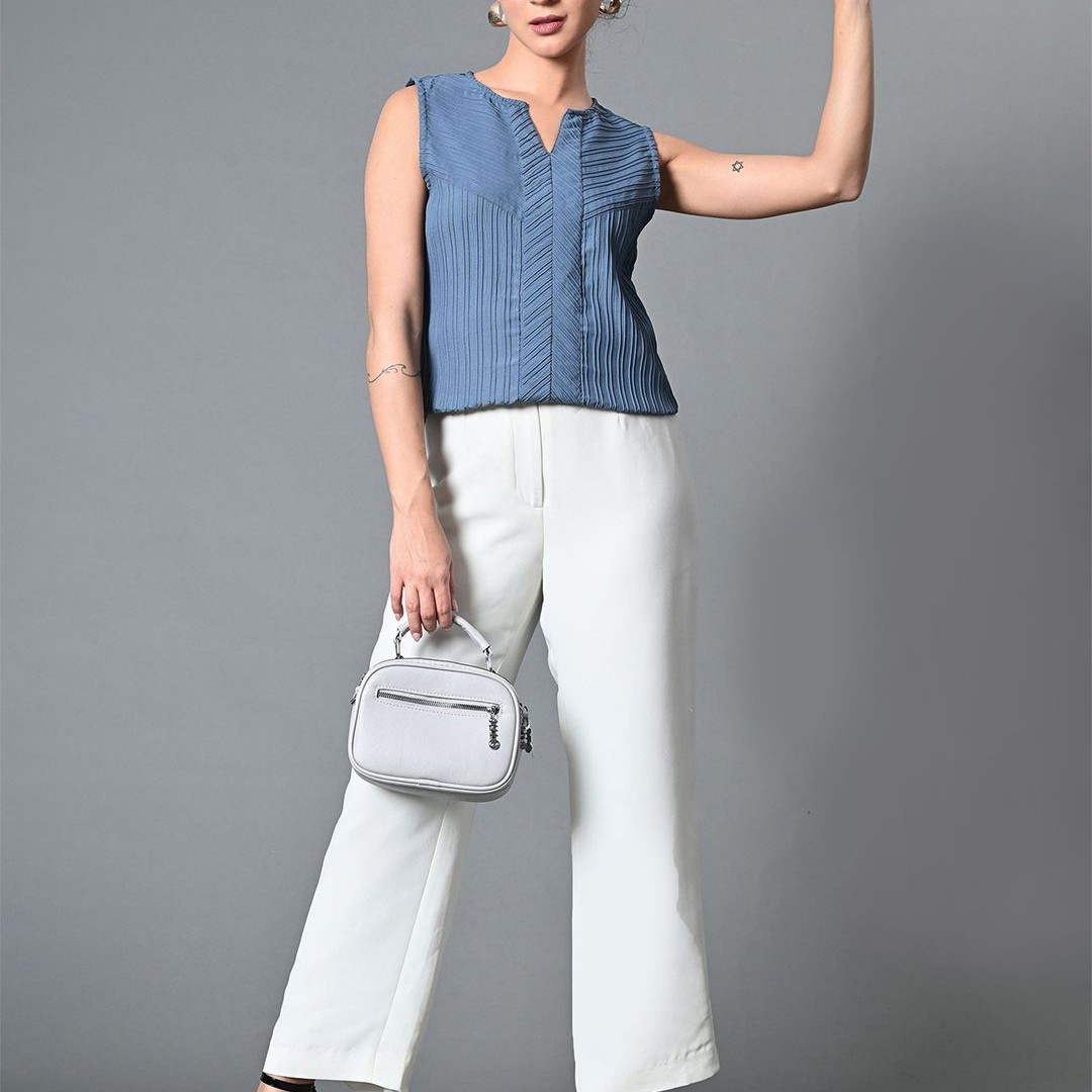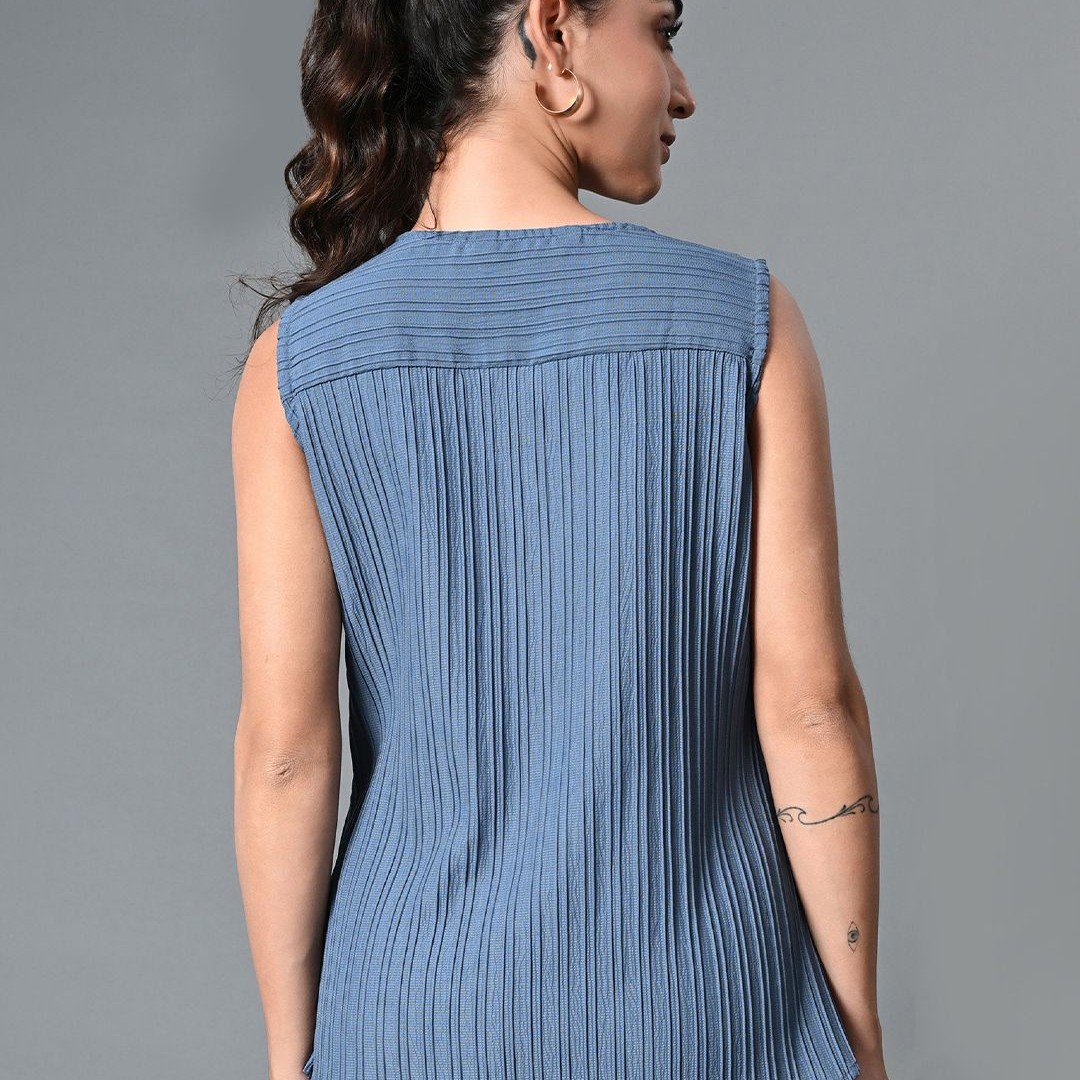 The Roadster Life Co. Women Self Design Keyhole Neck Polyester Top