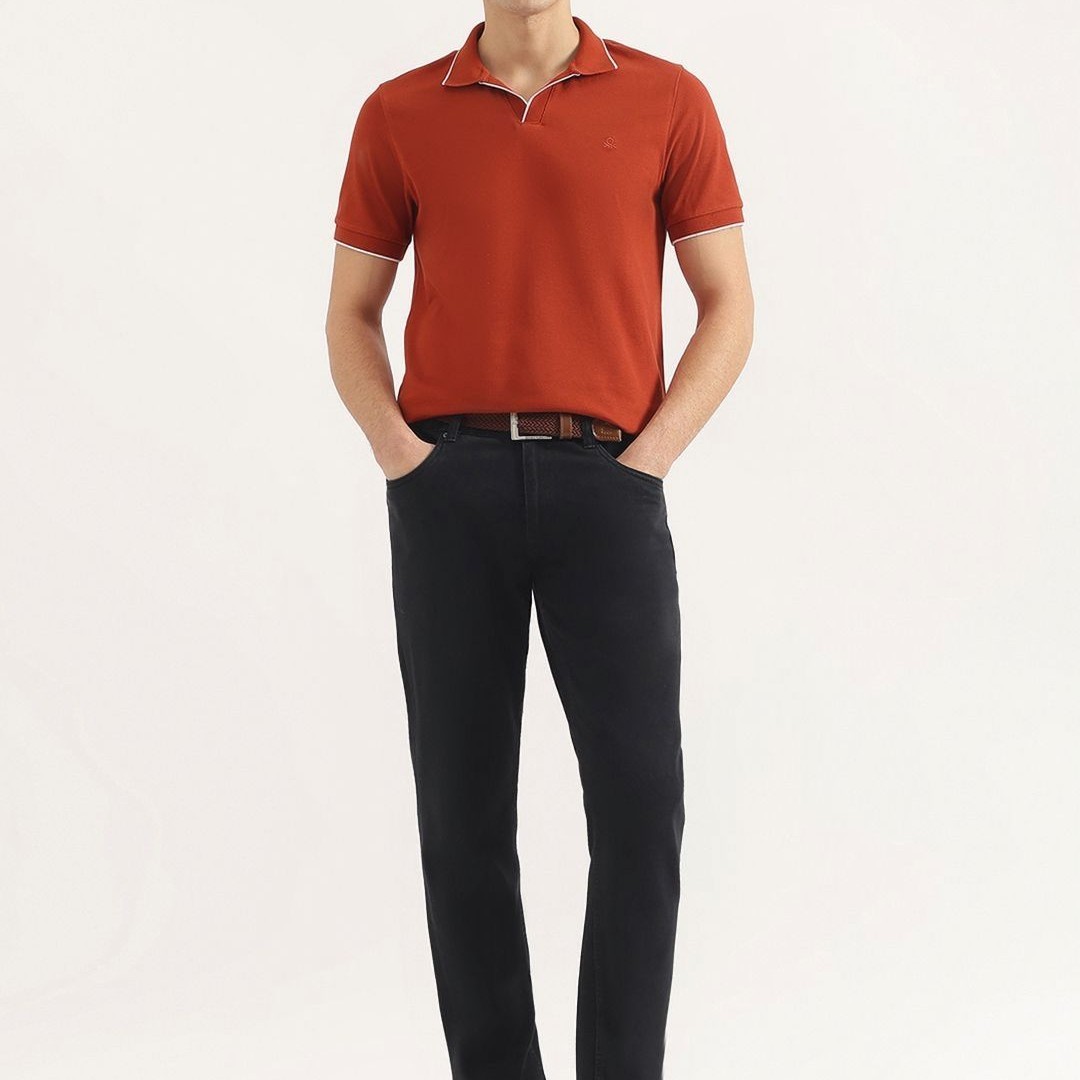 United Colors of Benetton Men Solid Polo Collar Cotton T-shirt