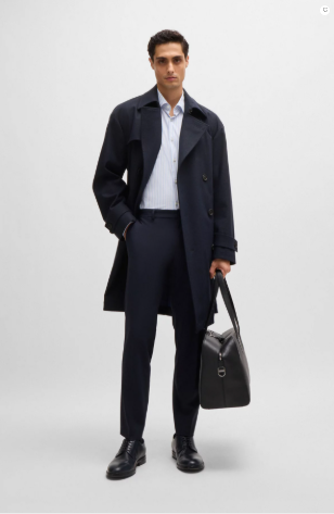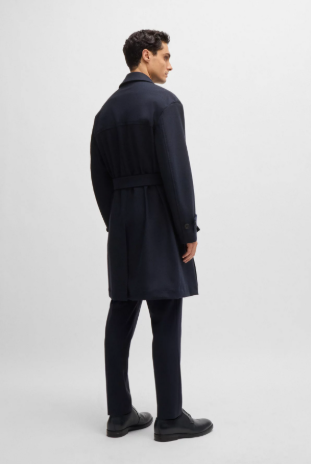A classic-fit trench coat in brushed flannel by BOSS. This water-repellent performance style features four-way stretch and a bonded-jersey inner.