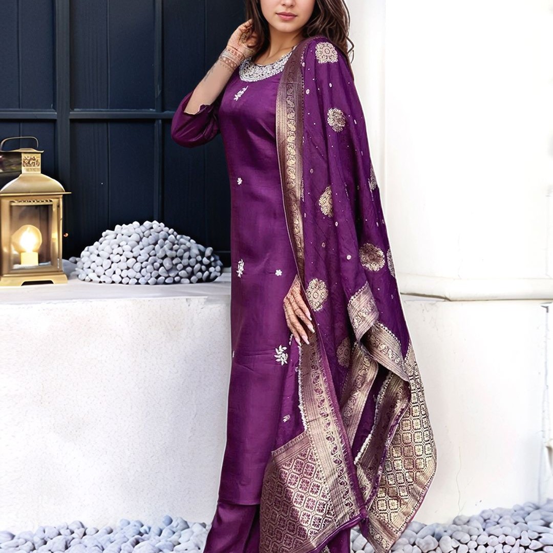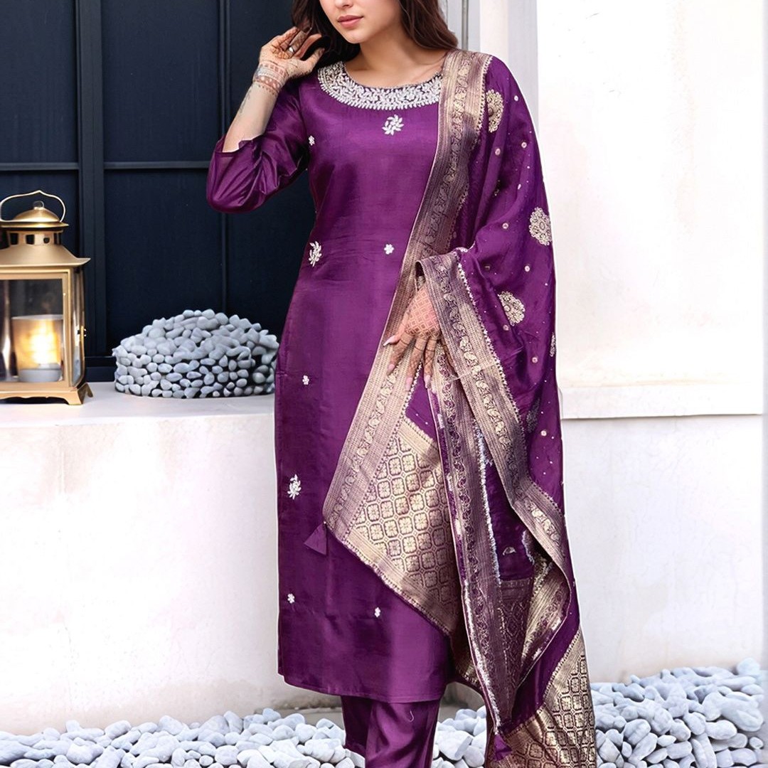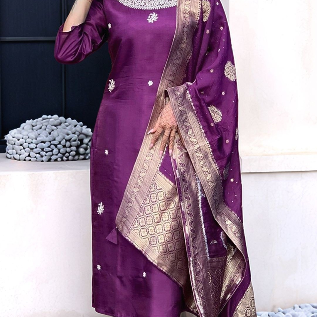 Aaghnya Women Floral Embroidered Regular Kurta & Trousers & Dupatta
