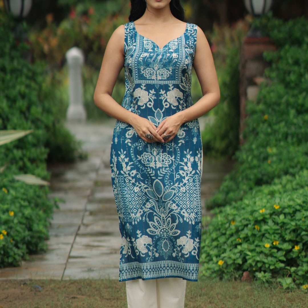 anayna Floral Printed Sweetheart Neck Straight Kurta With Trousers