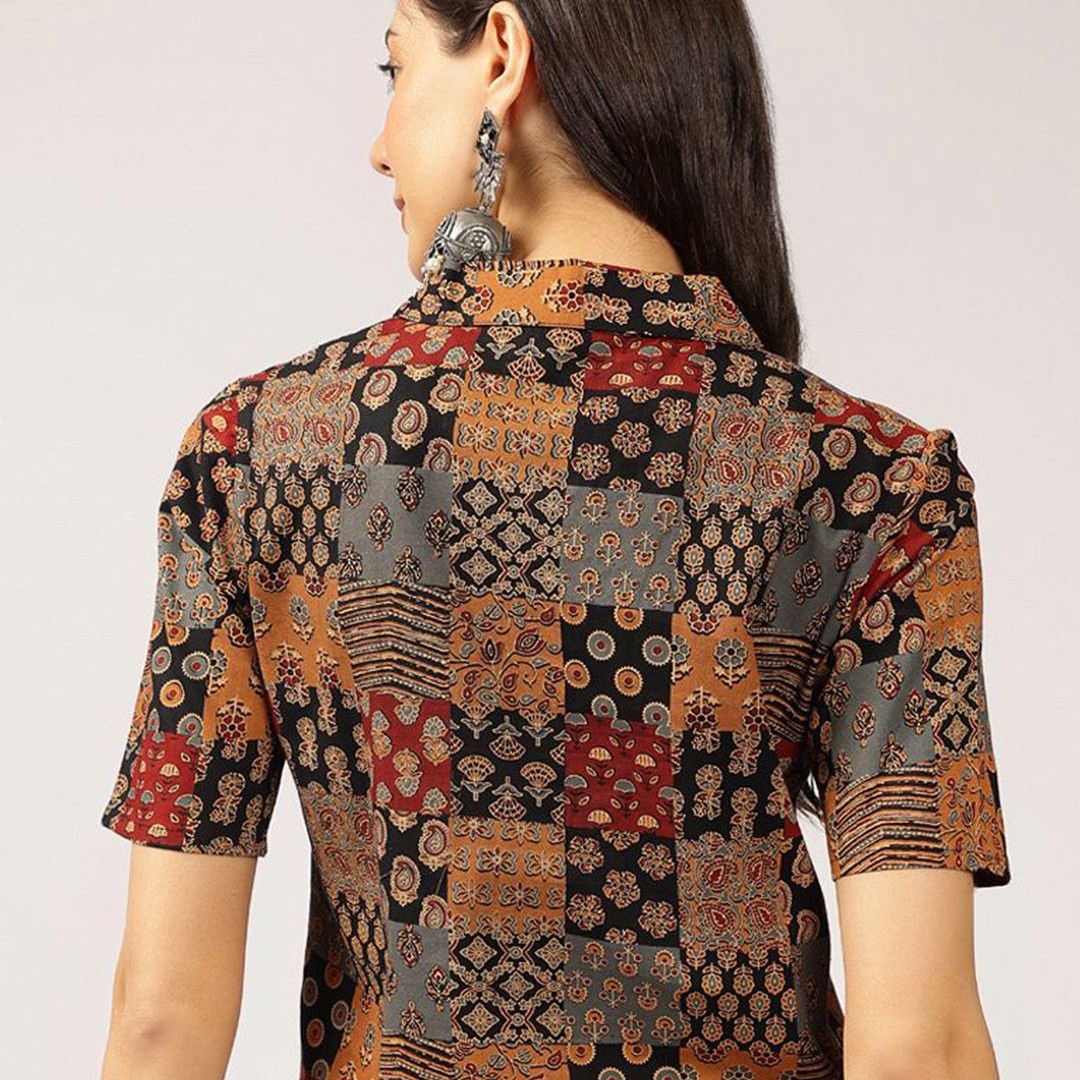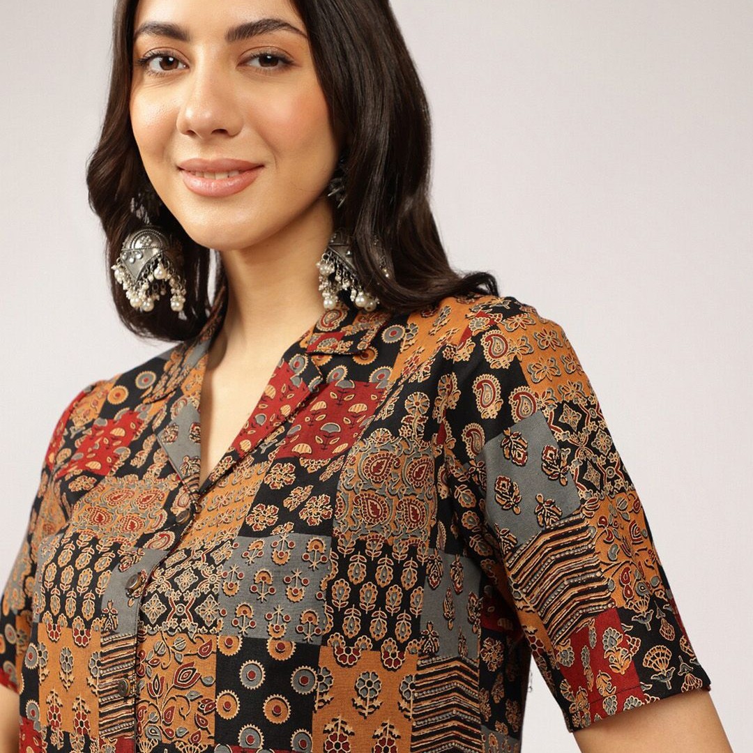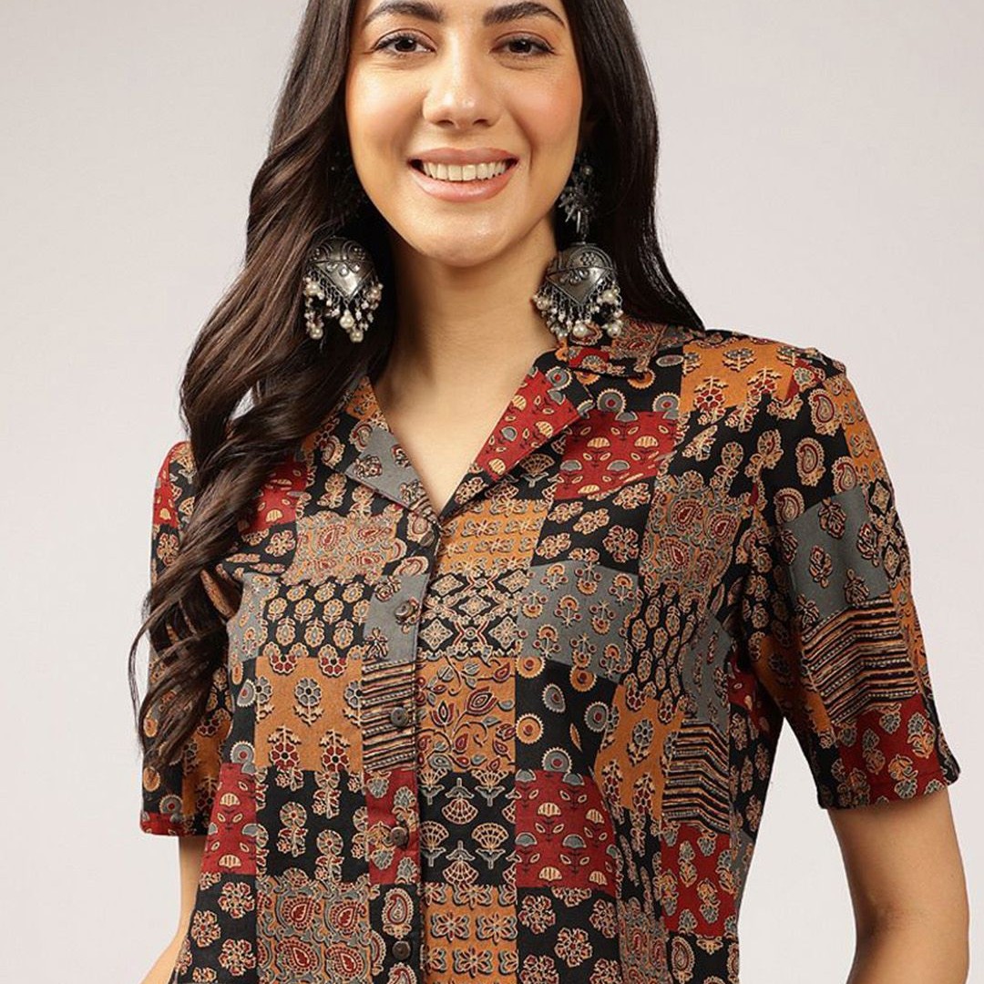Anouk Ethnic Printed Cuban Collar Pure Cotton Shirt Style Top