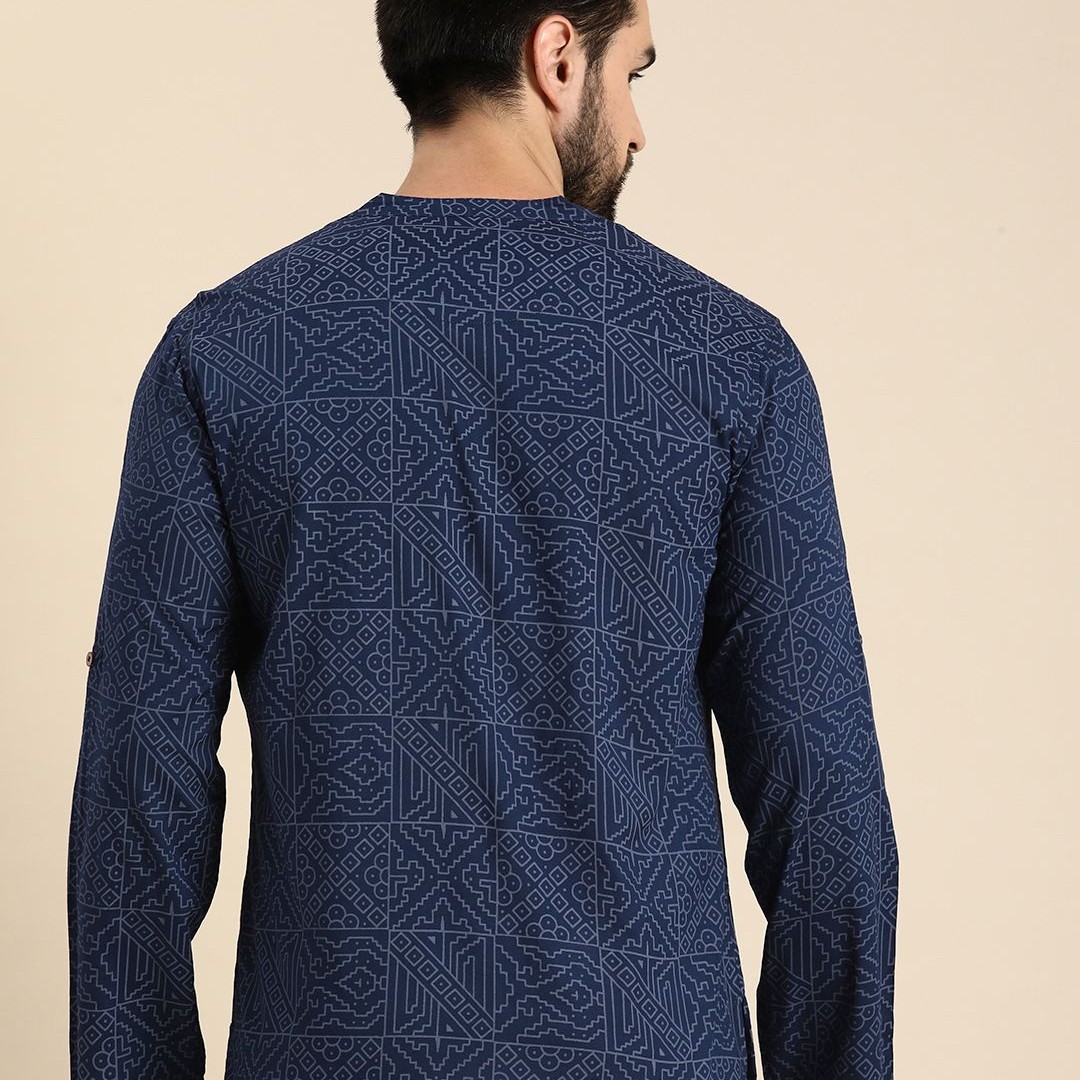 Anouk Men Geometric Printed Cotton Indigo Short Kurta