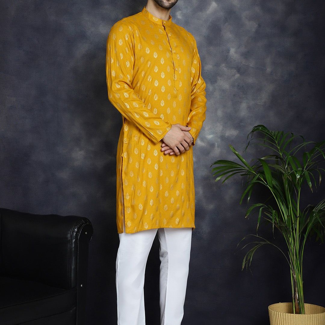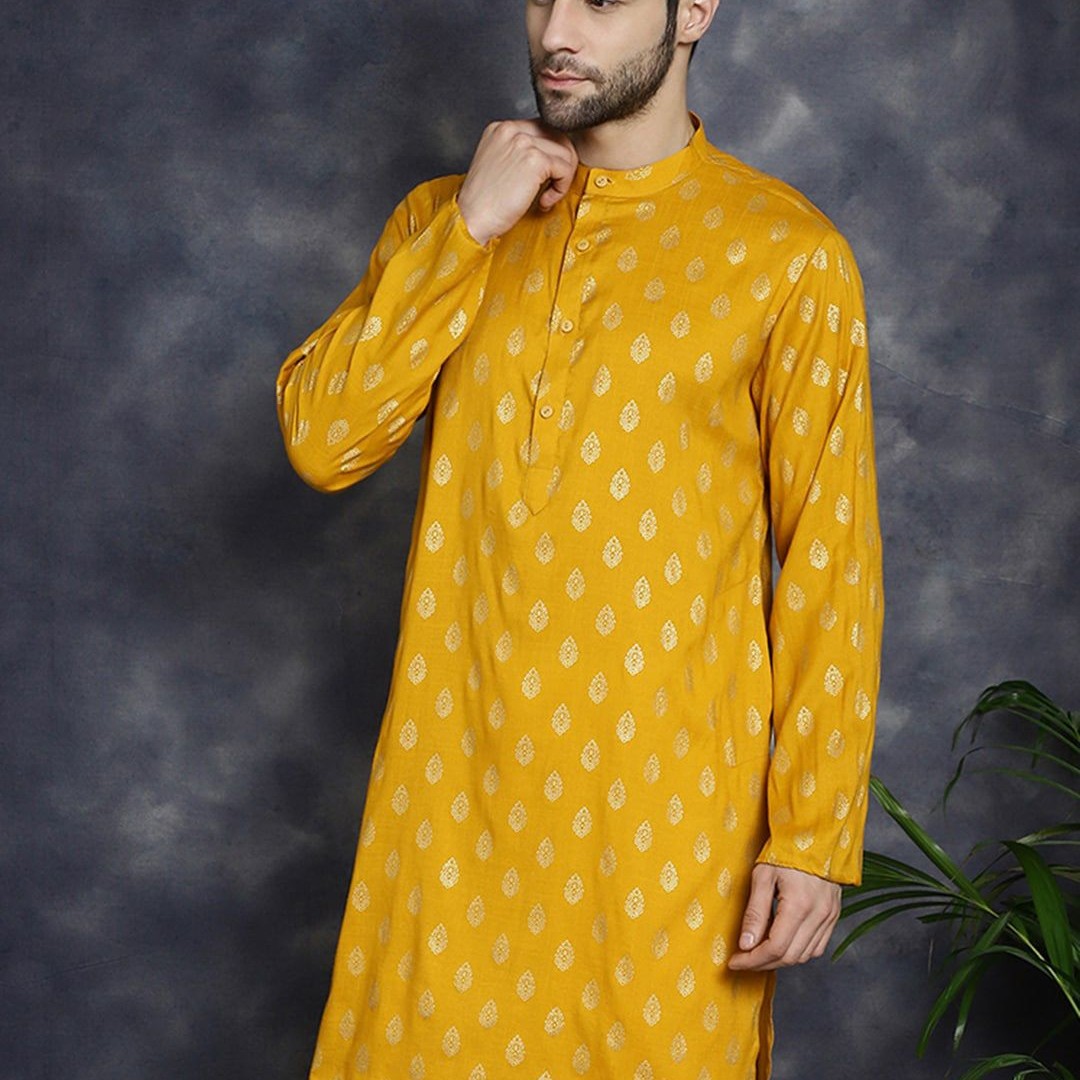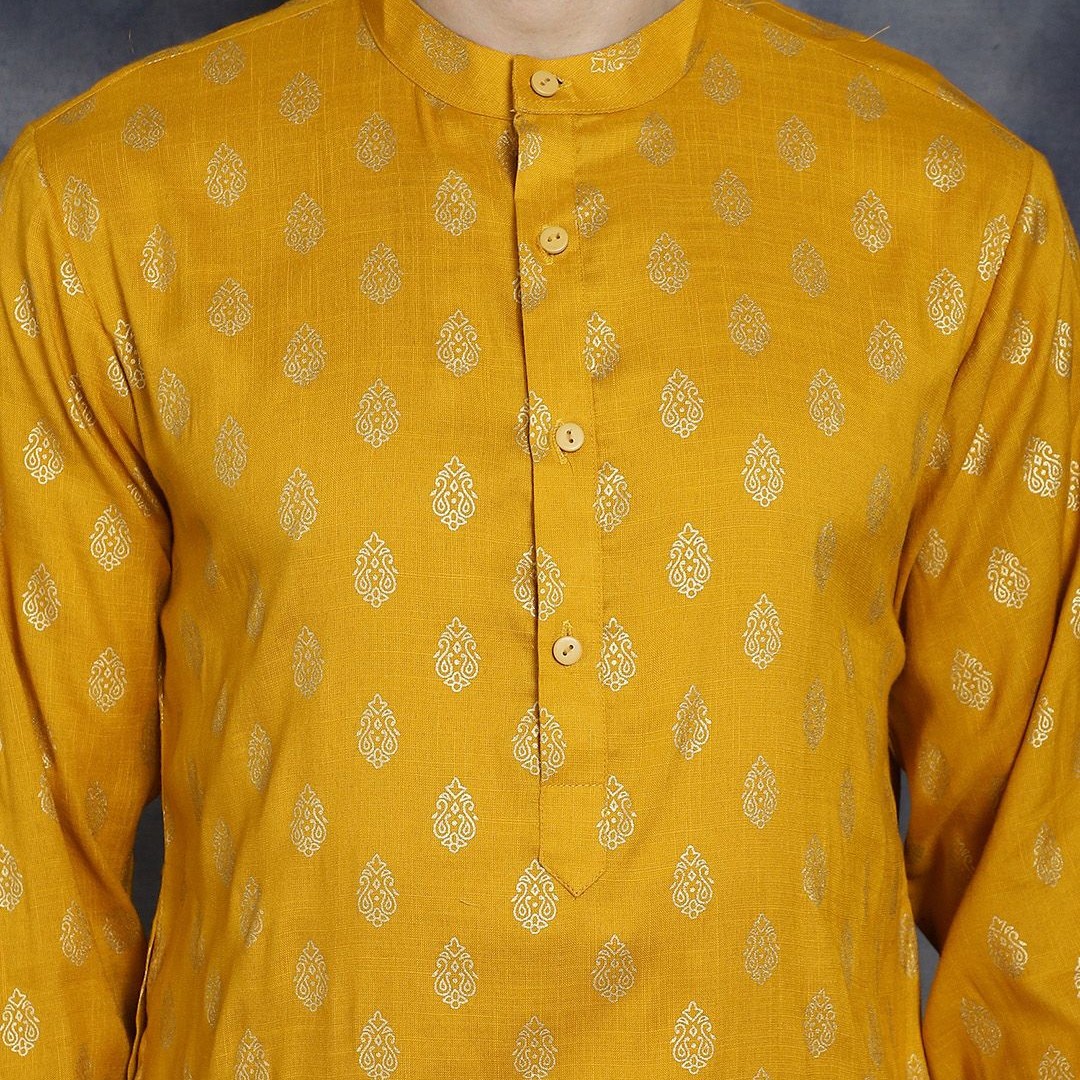 Anouk Mustard Yellow Ethnic Motifs Printed Band Collar Straight Kurta