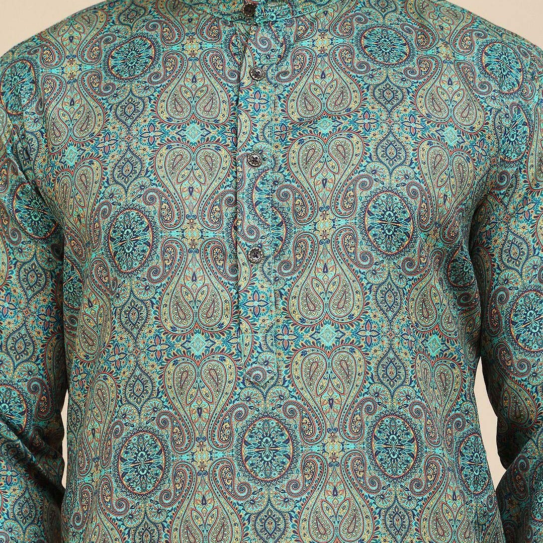 Anouk Rustic Paisley Printed Band Collar Straight Kurta