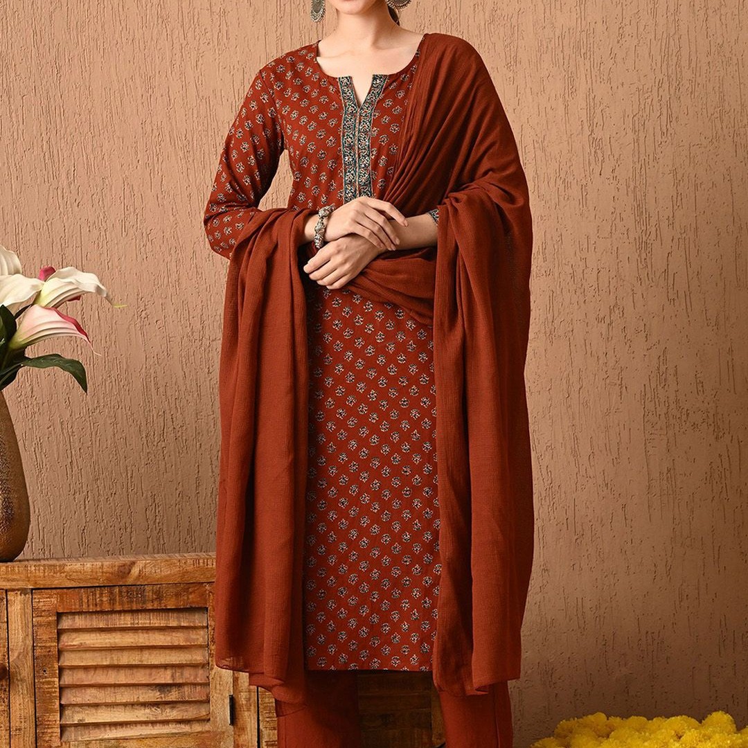 Anouk Women Floral Printed Regular Pure Cotton Kurta with Trousers & With Dupatta