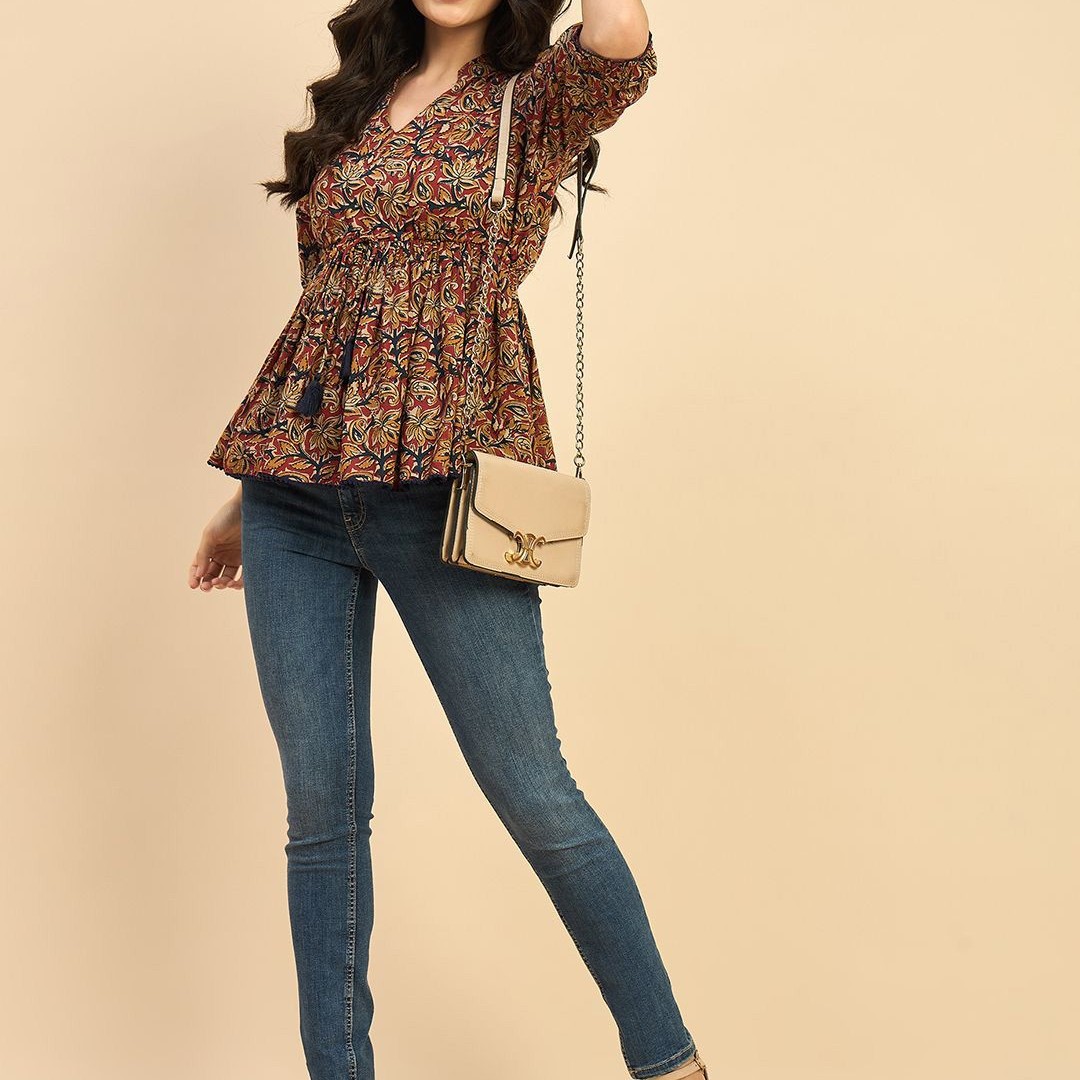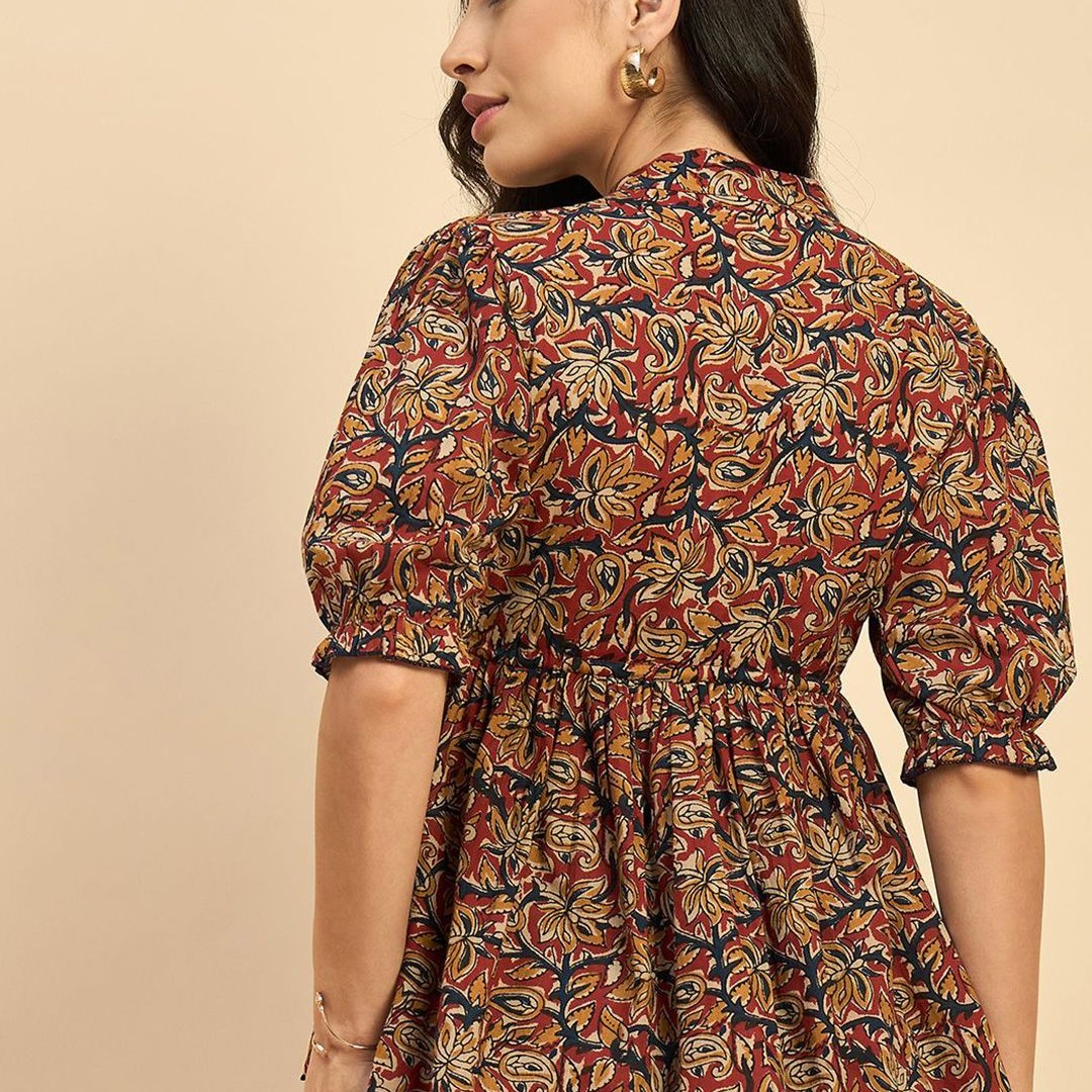 Azira Women Ethnic Printed Mandarin Collar Cotton Top