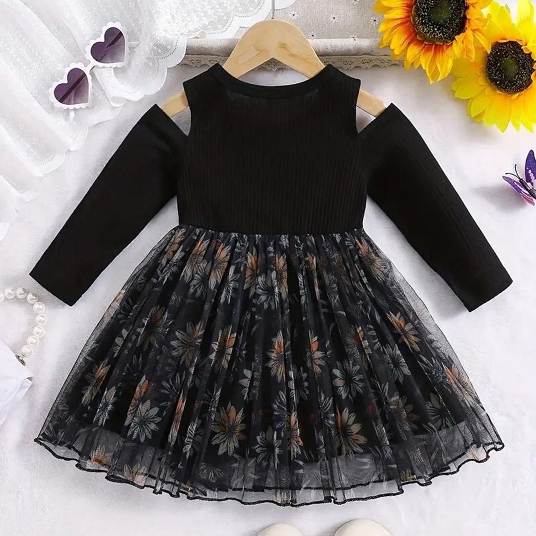 BAESD Floral Print Cold-Shoulder Net Fit & Flare Dress