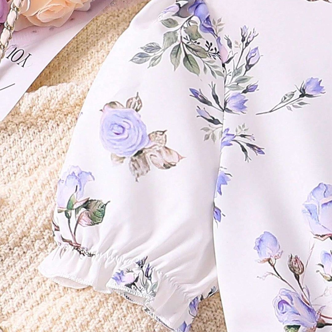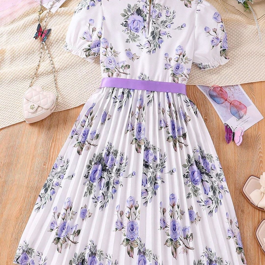 BAESD Girls Floral Printed Puff Sleeves Fit & Flare Dress