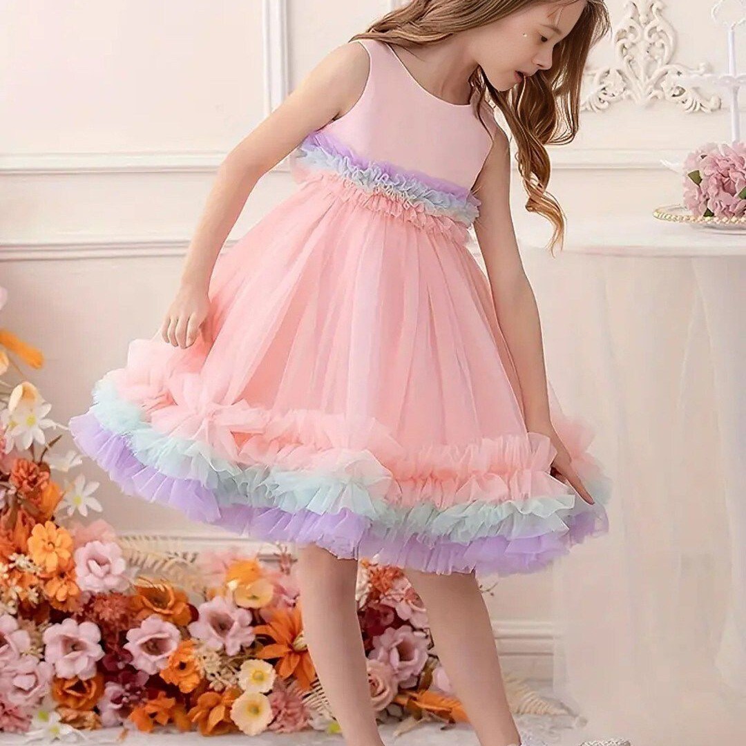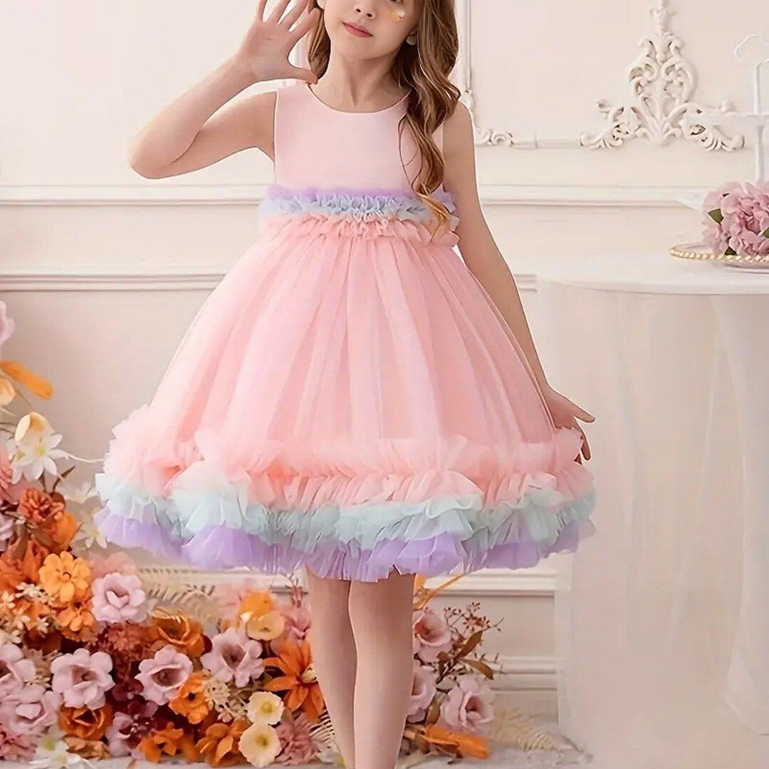 BAESD Girls Ruffled Net Fit & Flare Dress