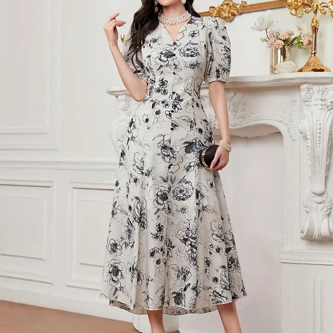 Bollyclues Women Floral Printed A-Line Midi Dress