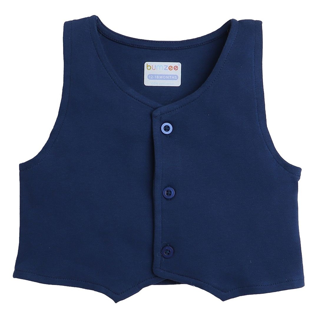 BUMZEE Boys Navy Blue & White Printed Shirt with Trousers