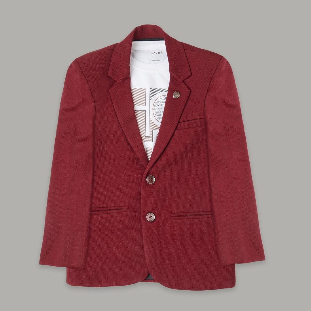 CAVIO Boys Comfort Fit Notched Lapel Collar Pure Cotton Single-Breasted Blazer & T-Shirt