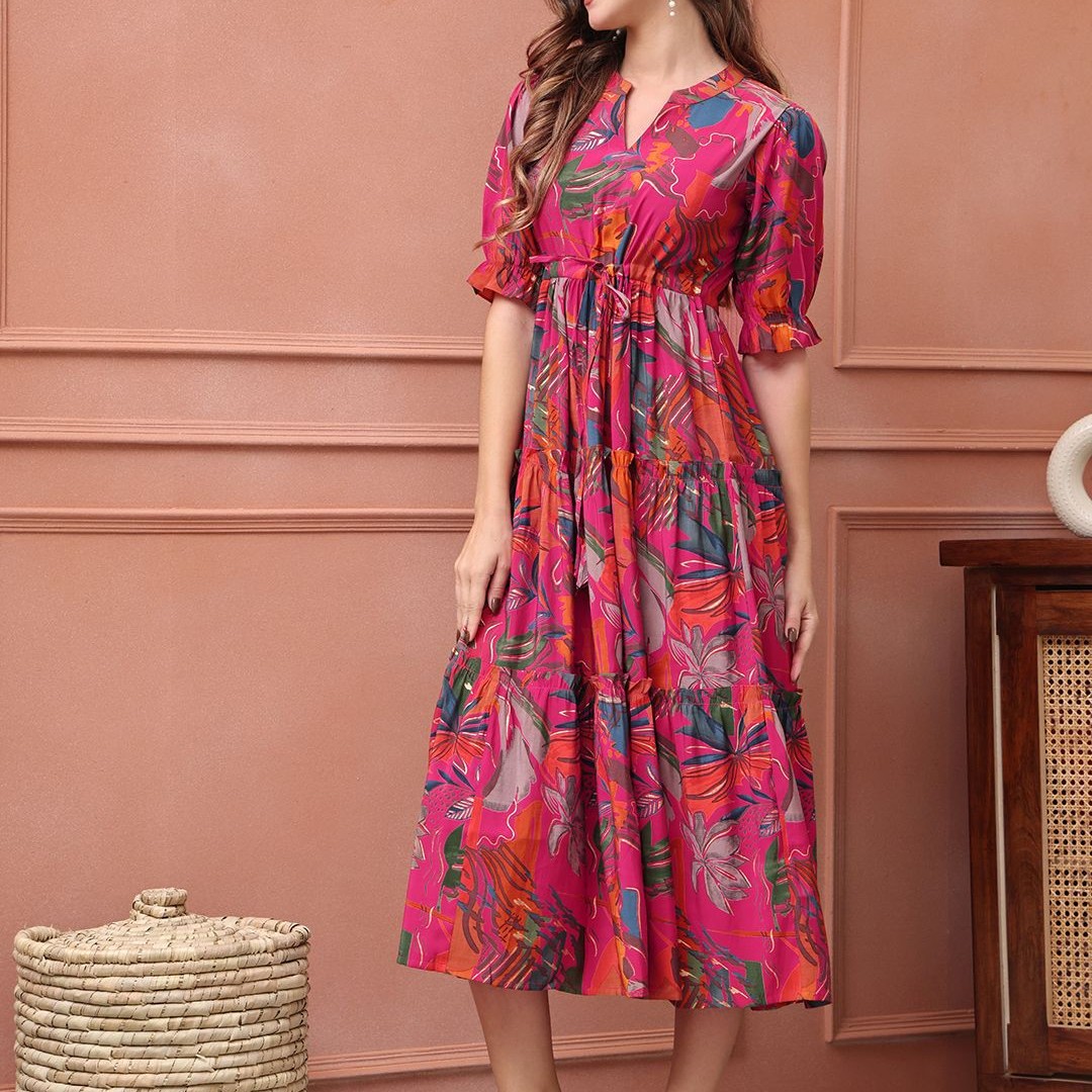 Claura Women Floral Printed Fit & Flare Midi Dress