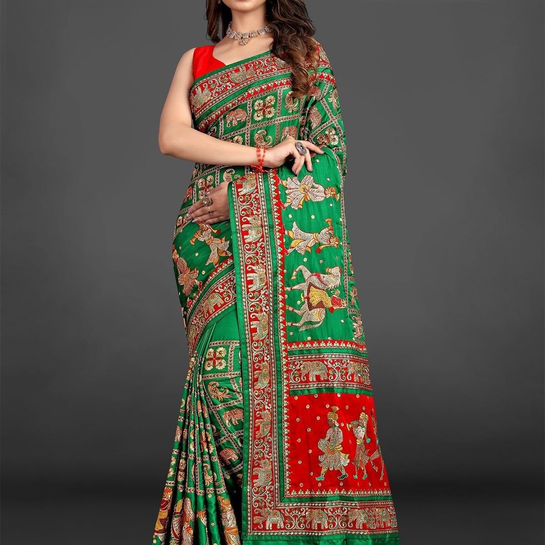 CRAFTYSTYLES Ethnic Motifs Zari Silk Blend Saree