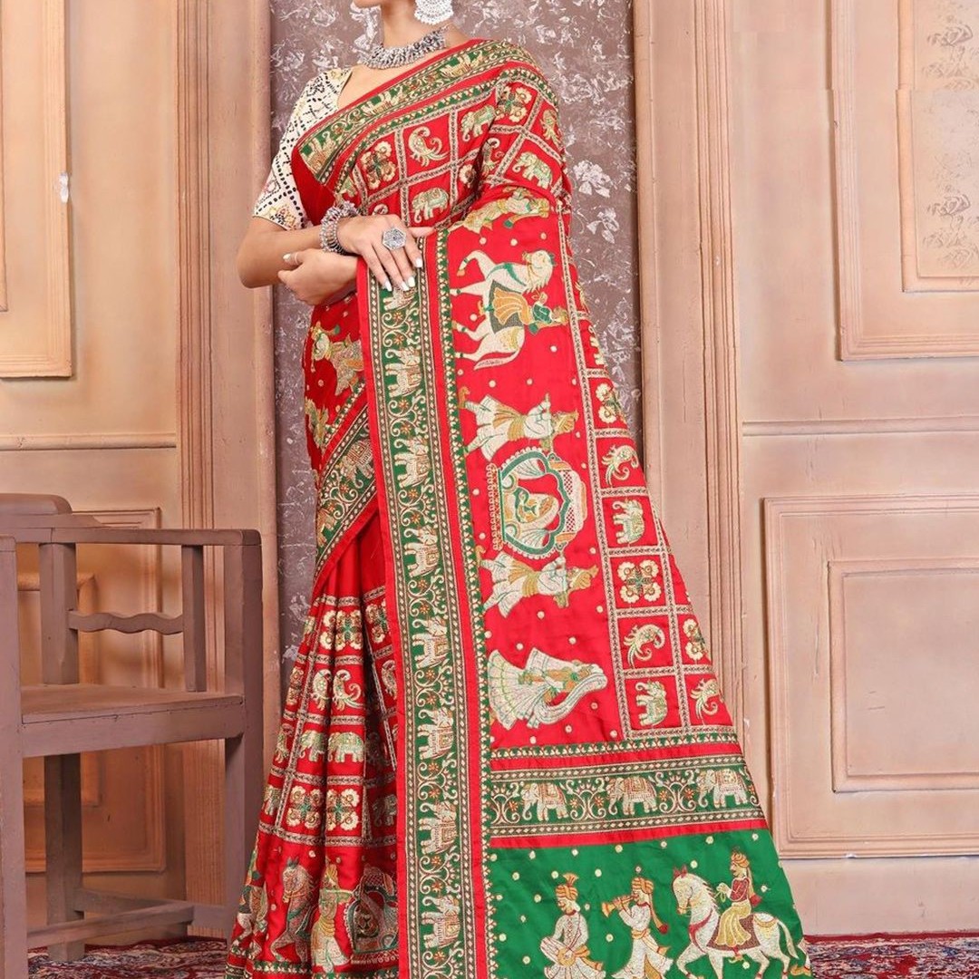 CRAFTYSTYLES Kalamkari Silk Blend Saree