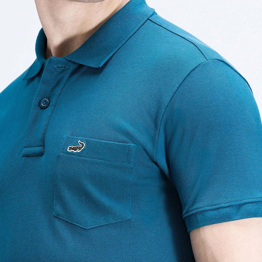Crocodile Men Solid Polo Collar Cotton T-shirt
