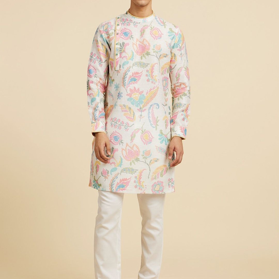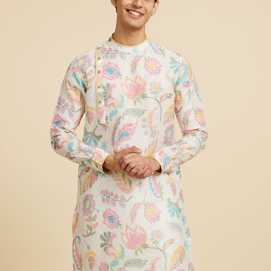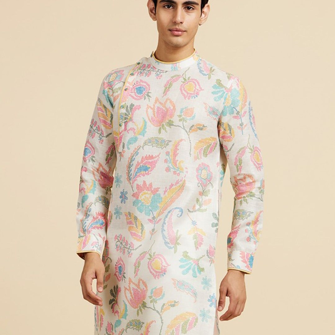Diwas by Manyavar Floral Printed Mandarin Collar Cotton Kurta