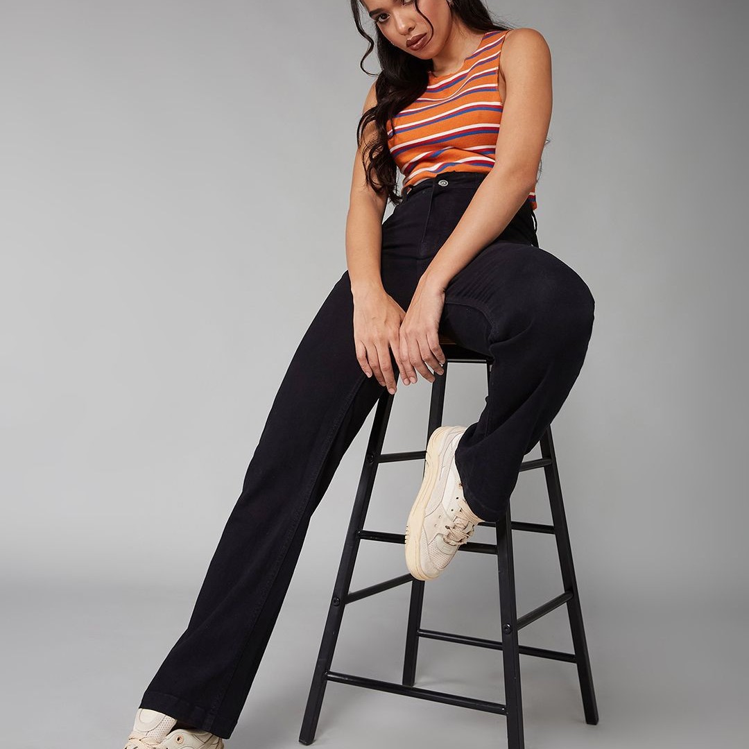 DOLCE CRUDO Women Straight Fit High-Rise Stretchable Jeans