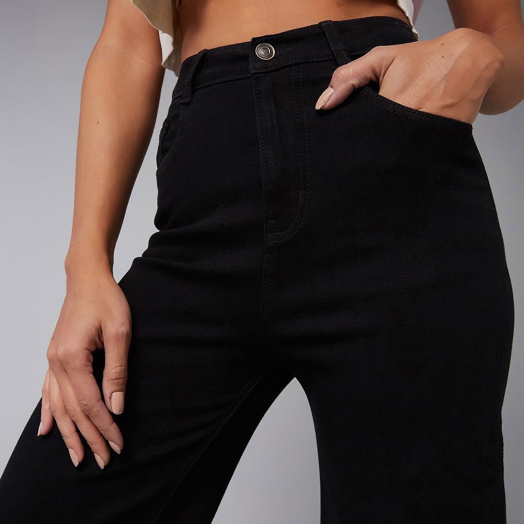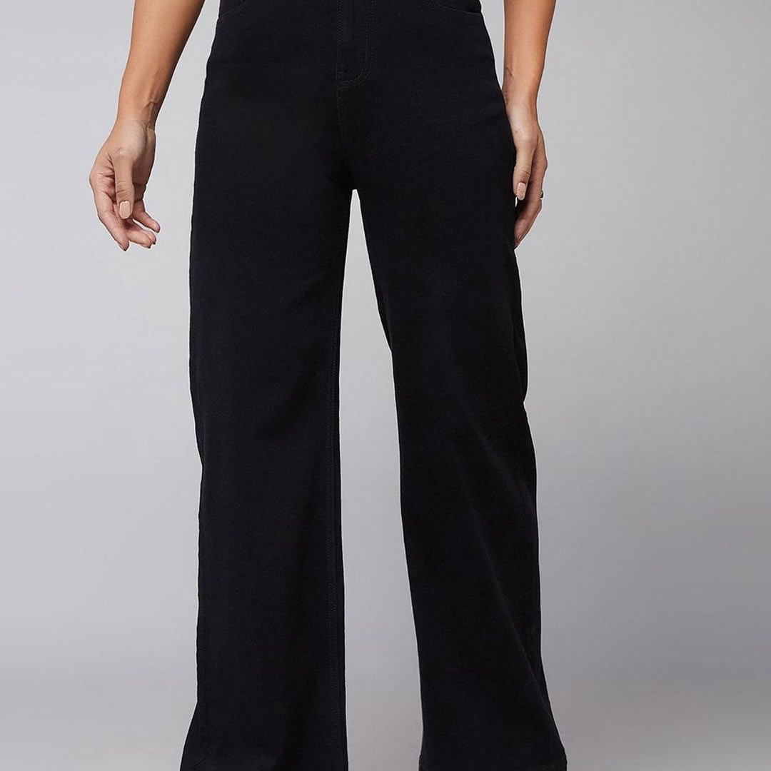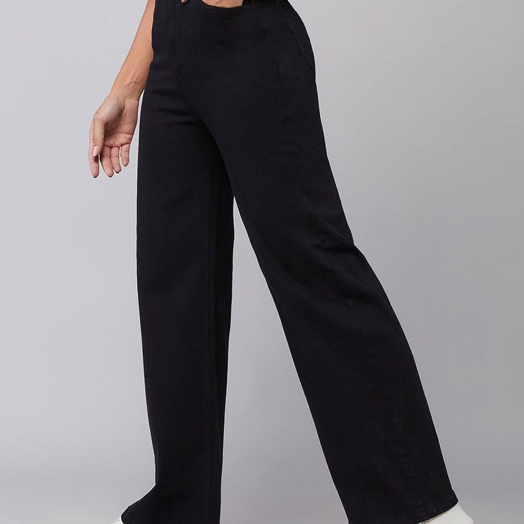 DOLCE CRUDO Women Wide Leg High Rise Clean Look Stretchable Denim Jeans