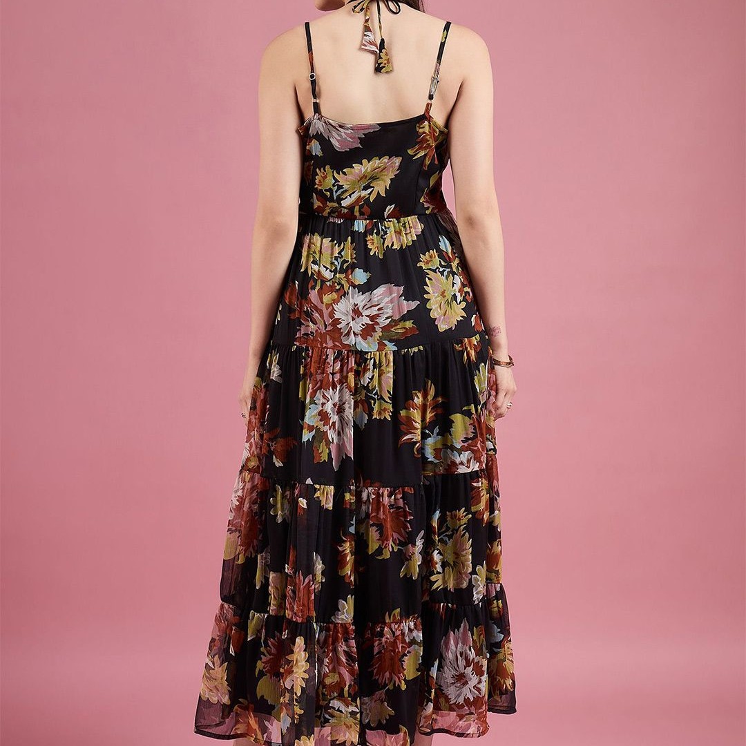 DressBerry Floral Print Chiffon Maxi Dress