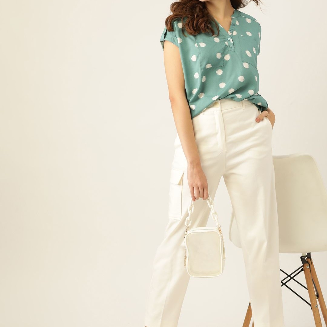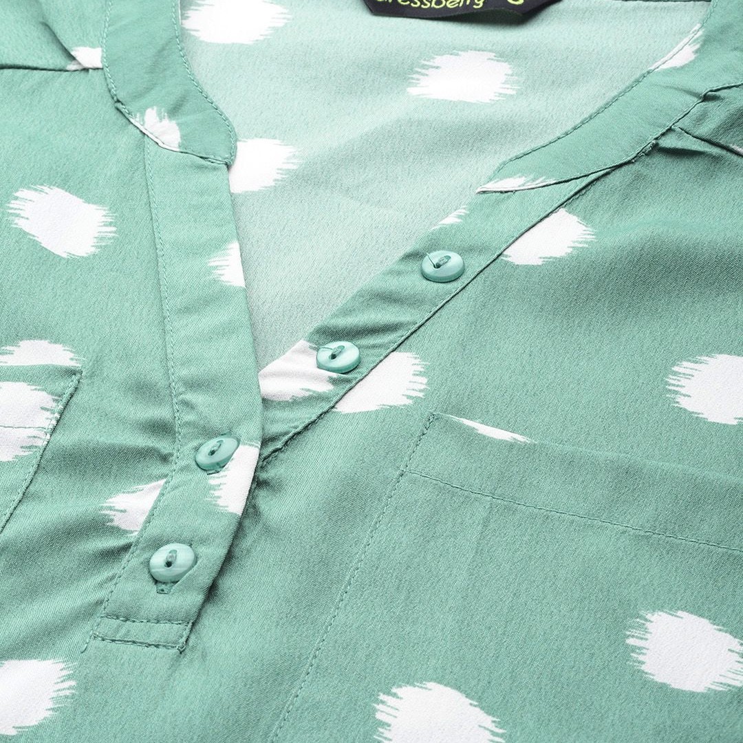 DressBerry Women Green & Off White Printed Boxy Top