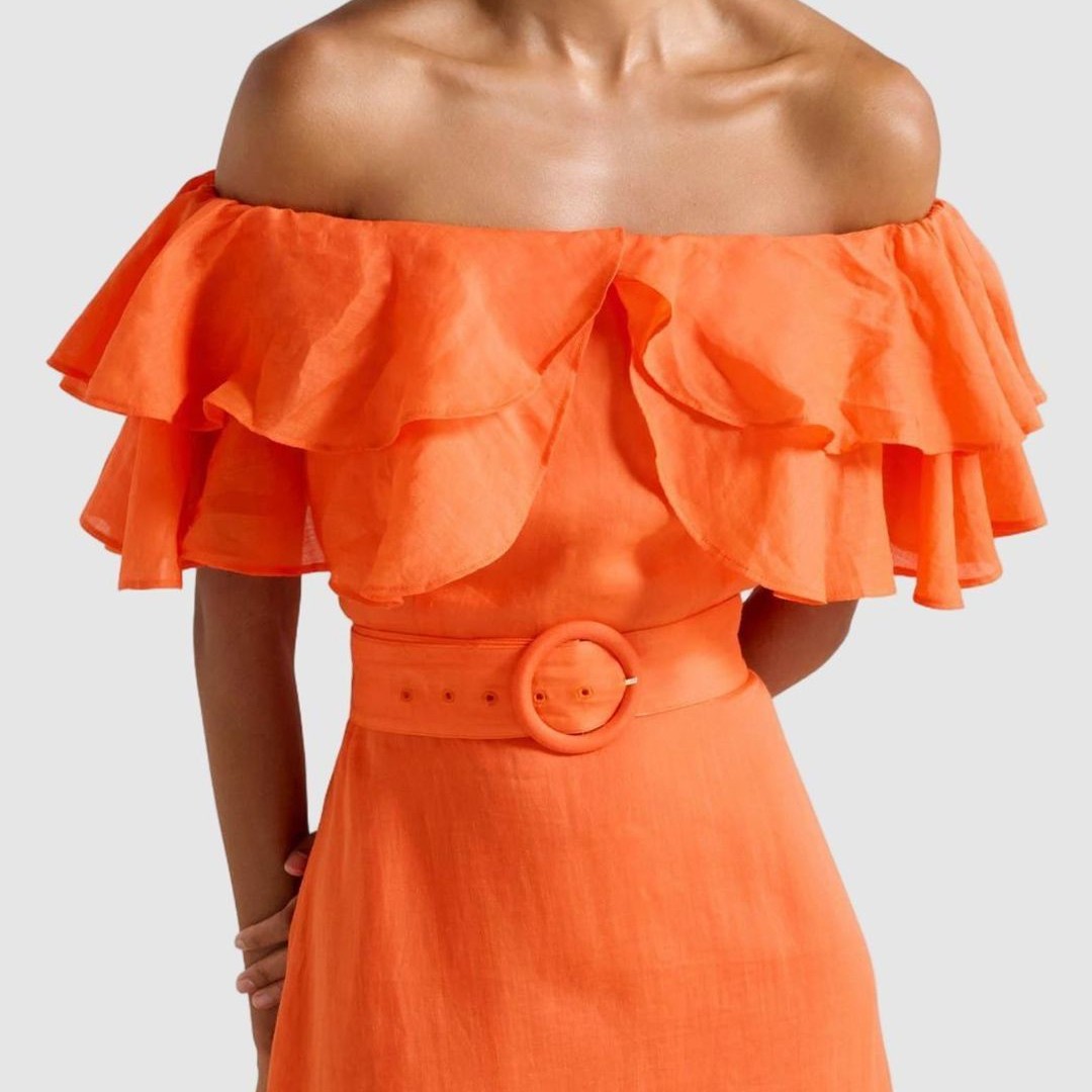 Forever New Women Off-Shoulder Flared Sleeve A-Line Midi Dress