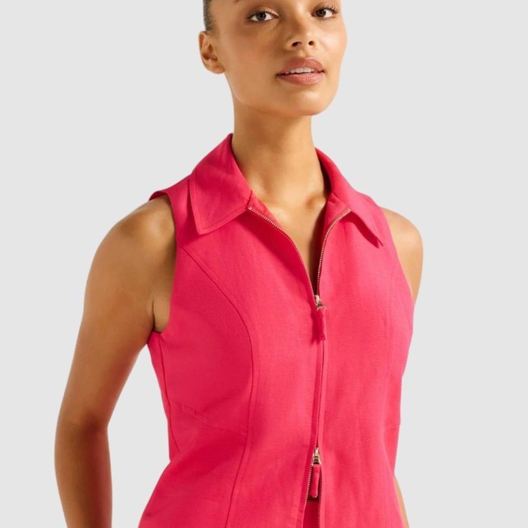 Forever New Women Solid Shirt Collar Sleeveless Top