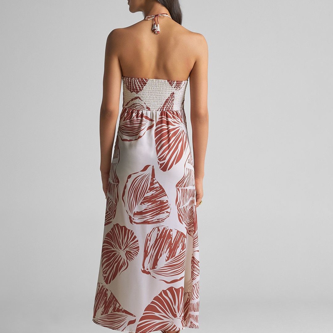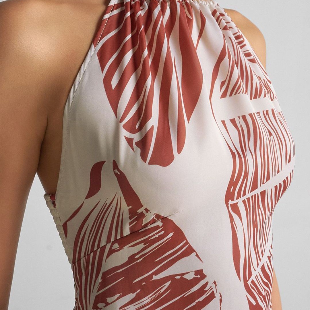 GABLOR Print Halter Neck Satin Maxi Midi Dress