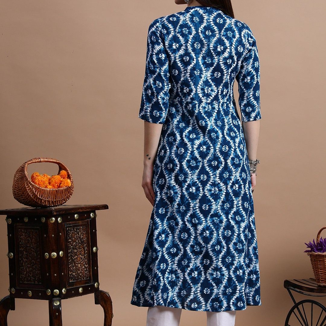 GLOWWORLD Tie & Dye Band Collar Straight Kurta