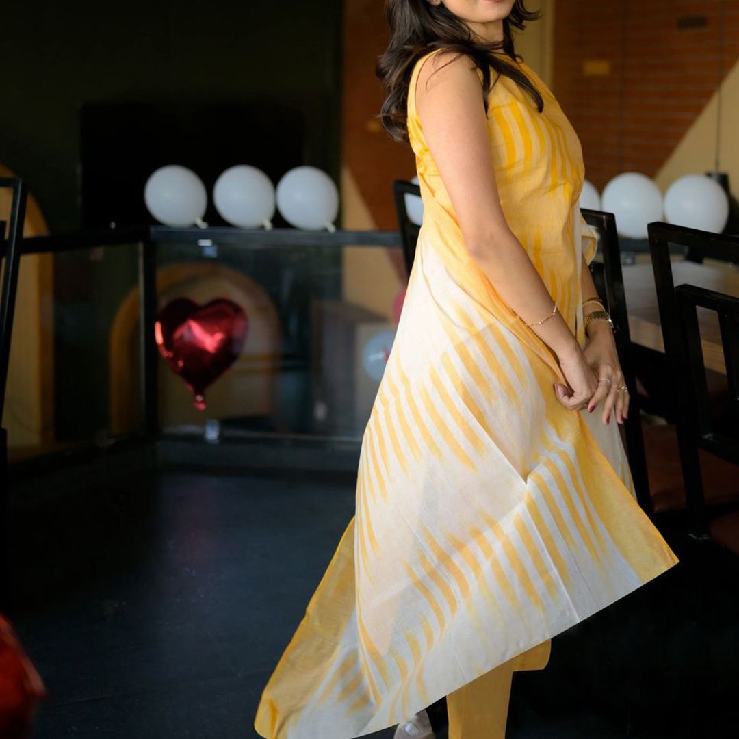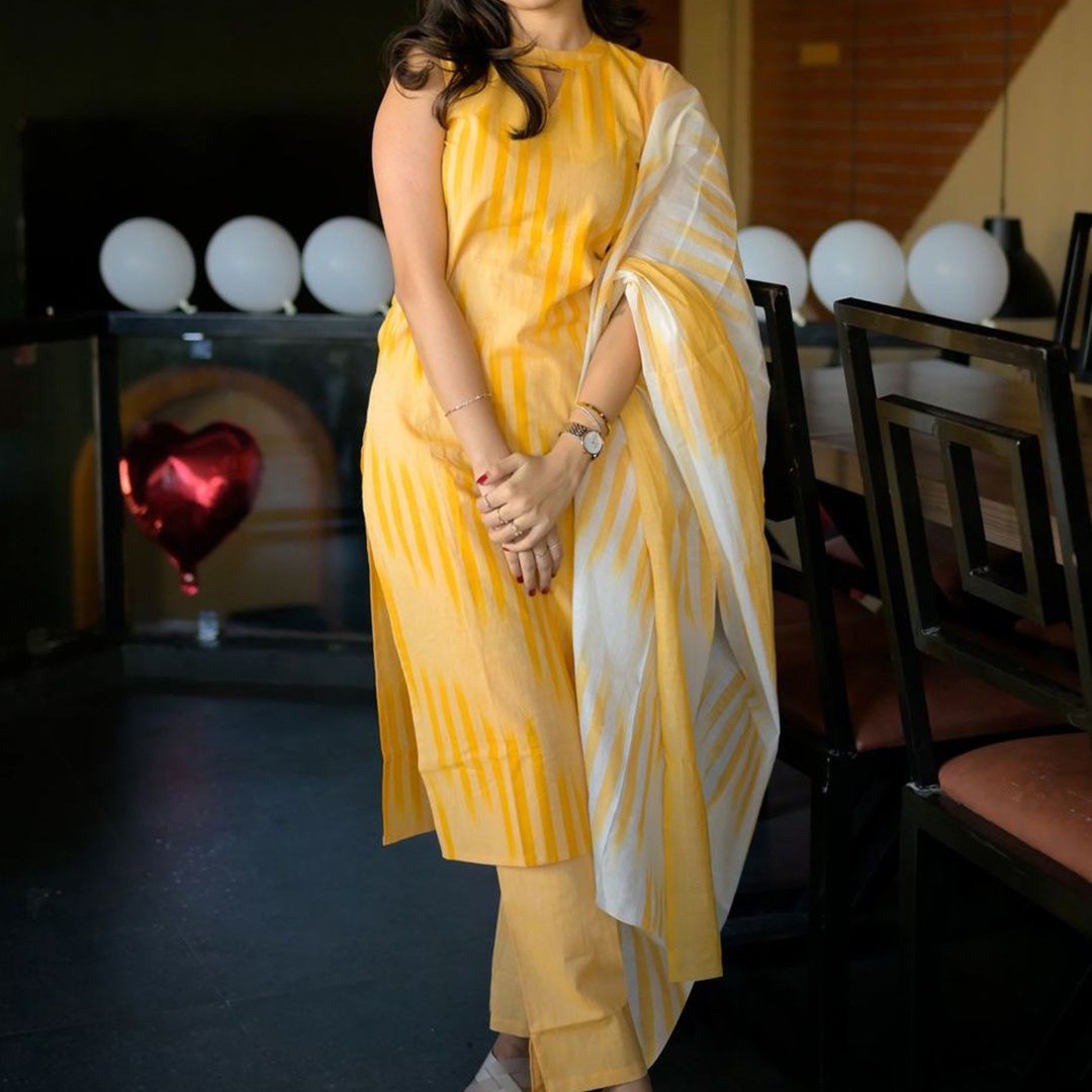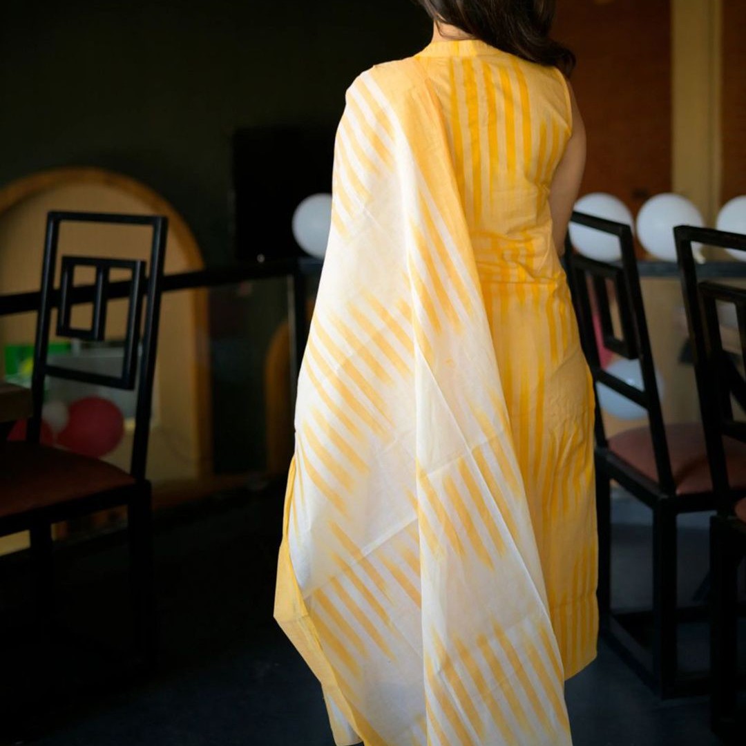 GoSriKi Striped Key Hole Neck Kurta With Trousers & Dupatta