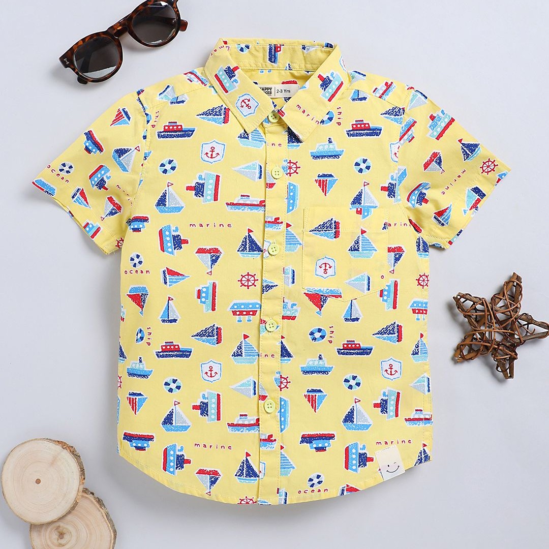 Happy Faces Kids Boys Printed Pure Cotton Casual Shirt