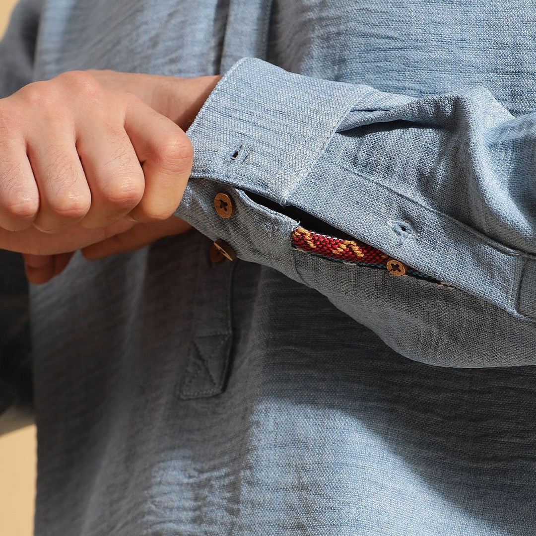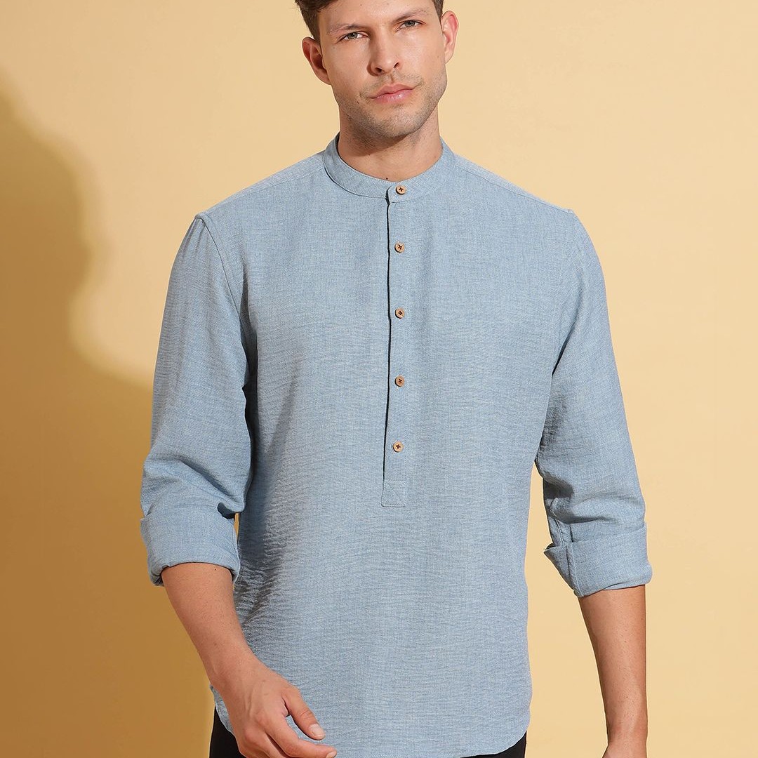 HERE&NOW Band Collar Cuffed Sleeves Straight Short Kurta