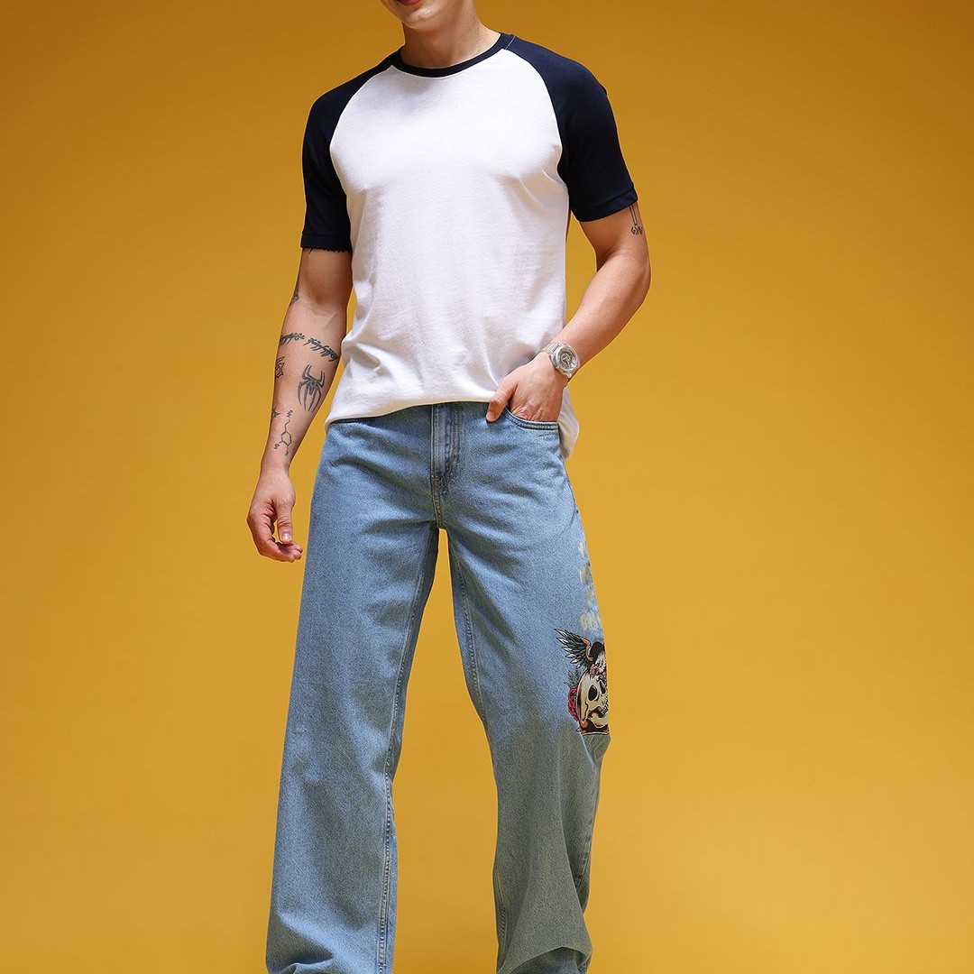 HERE&NOW Men Graphic Print Mid-Rise Pure Cotton Baggy Fit Jeans