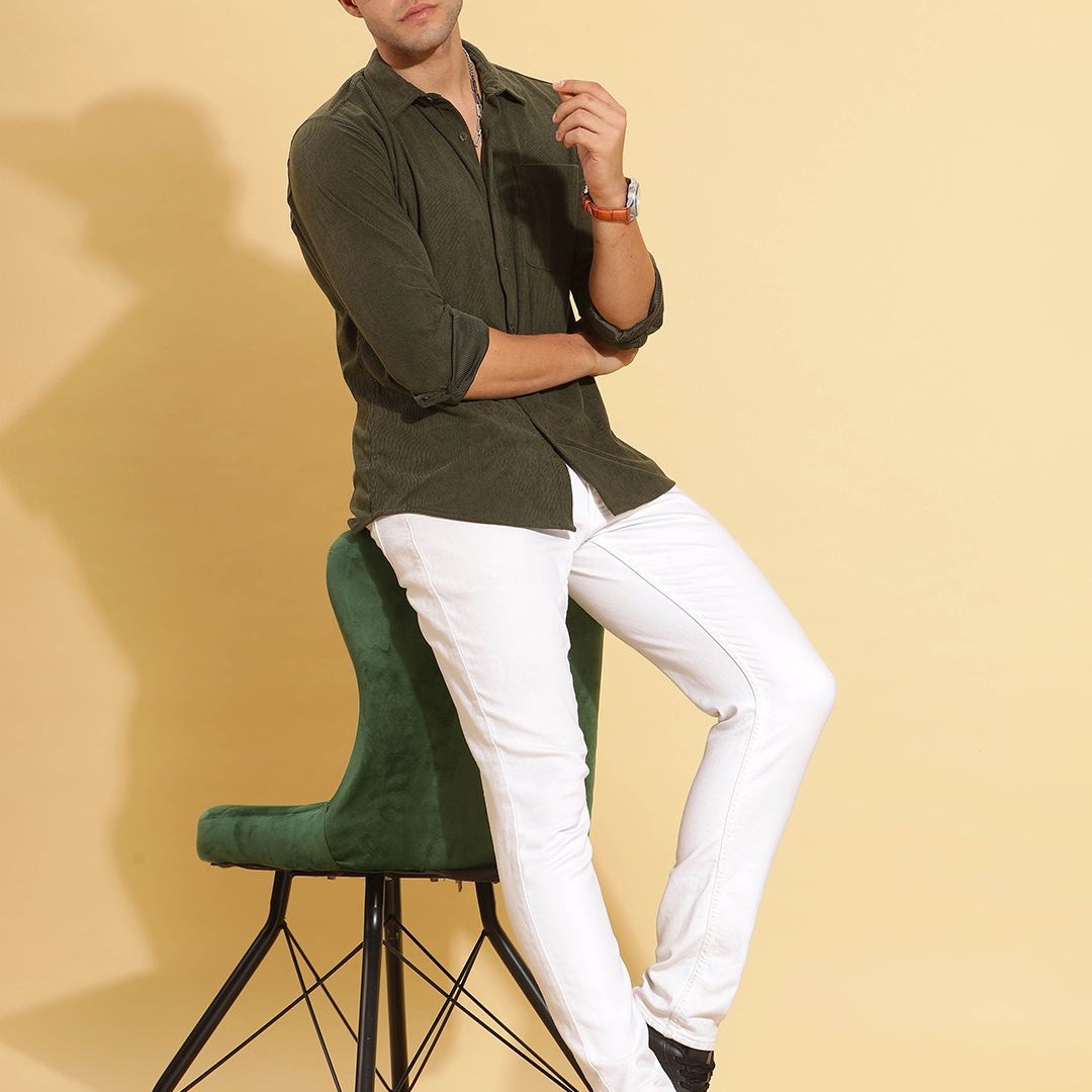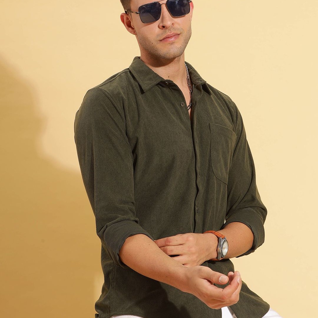 HERE&NOW Spread Collar Slim Fit Corduroy Casual Shirt